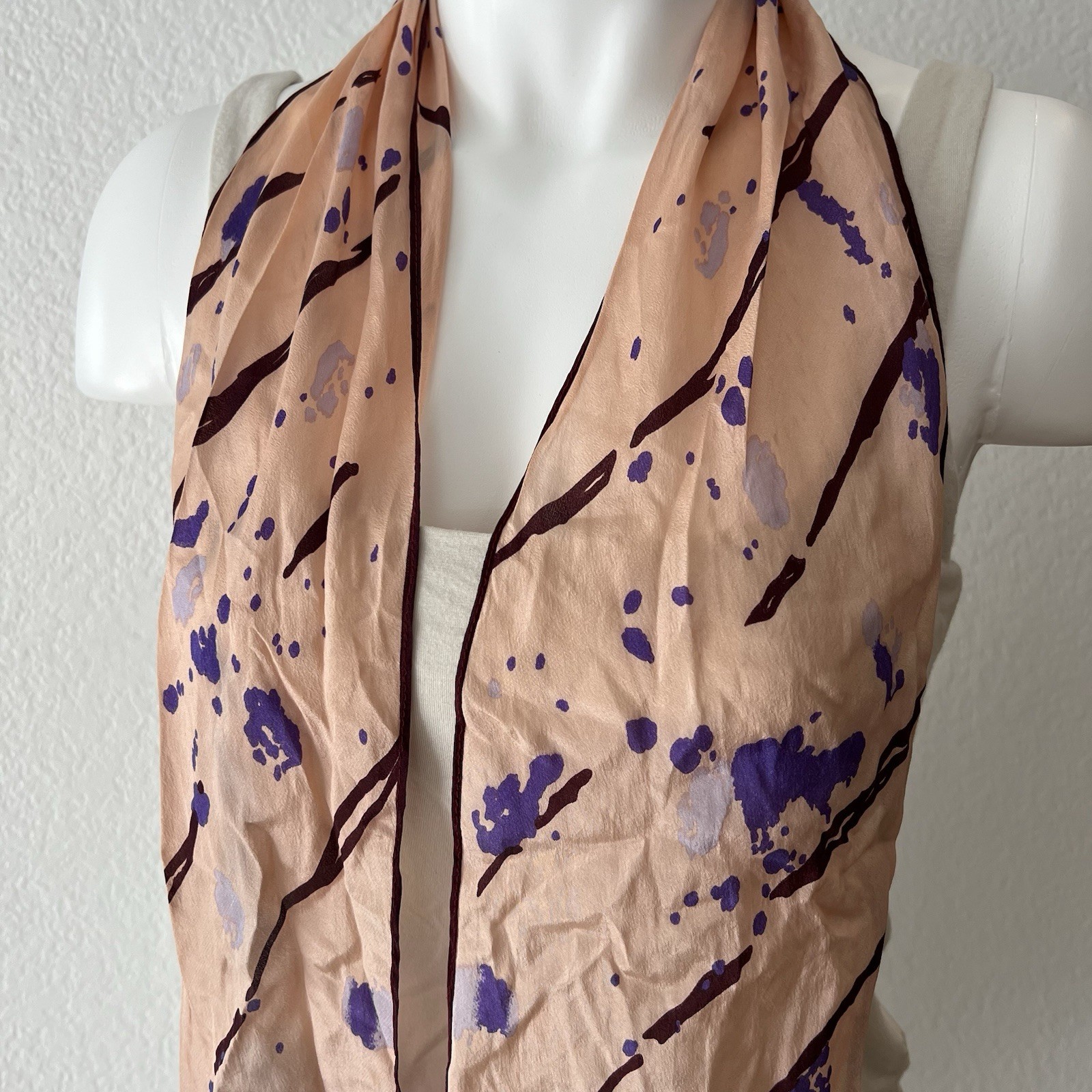 как выглядит Vintage Anne Klein Splatter Print Oblong Chiffon Scarf фото