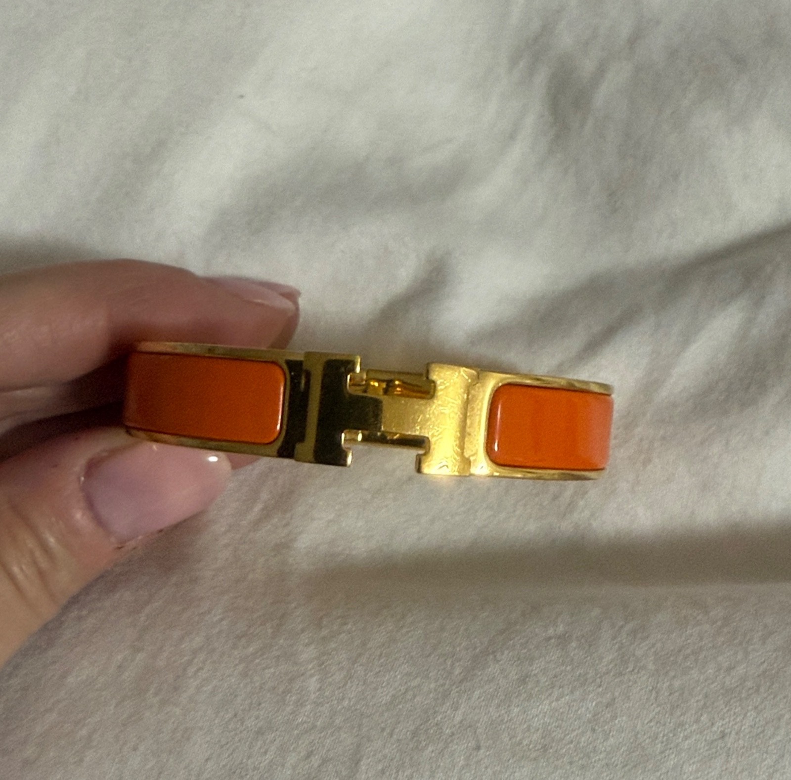 как выглядит HERMES Bracelet Click H Orange Gold 8A PM Small Clack Bangle Authentic NEW фото