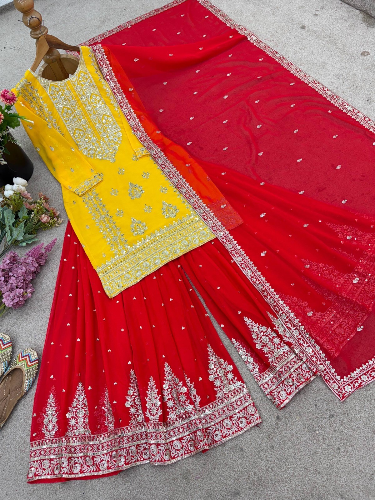 Festival Wear Pure Heavy Georgette Palazzo Suit With Dupatta For Women Girls
