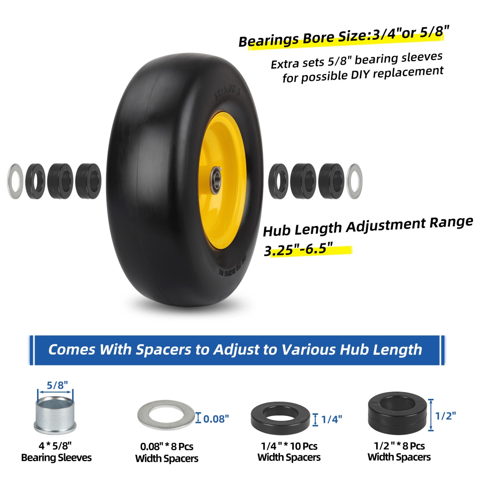 2 Pack 13x5.00-6 Flat Free Lawn Mower Tire Wheel, Fits 3/4 5/8 Axles