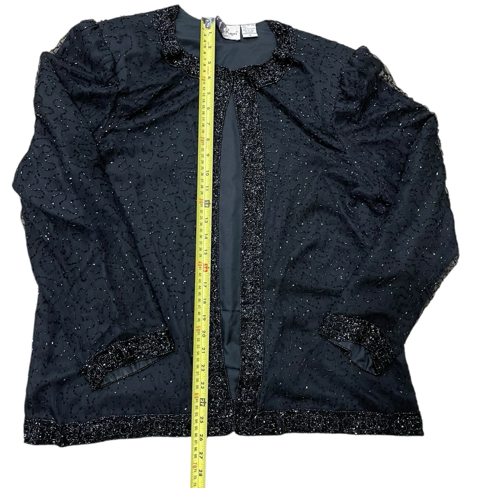 как выглядит Vintage Laurence Kazar Silk Black Beaded Sequin Evening Jacket Size 1X Lined фото