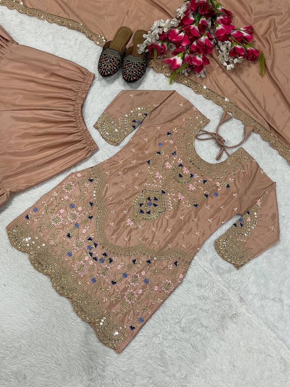 Exclusive Look Natural Crap Silk Peach Palazzo Suit With Dupatta For Ethnic Wear