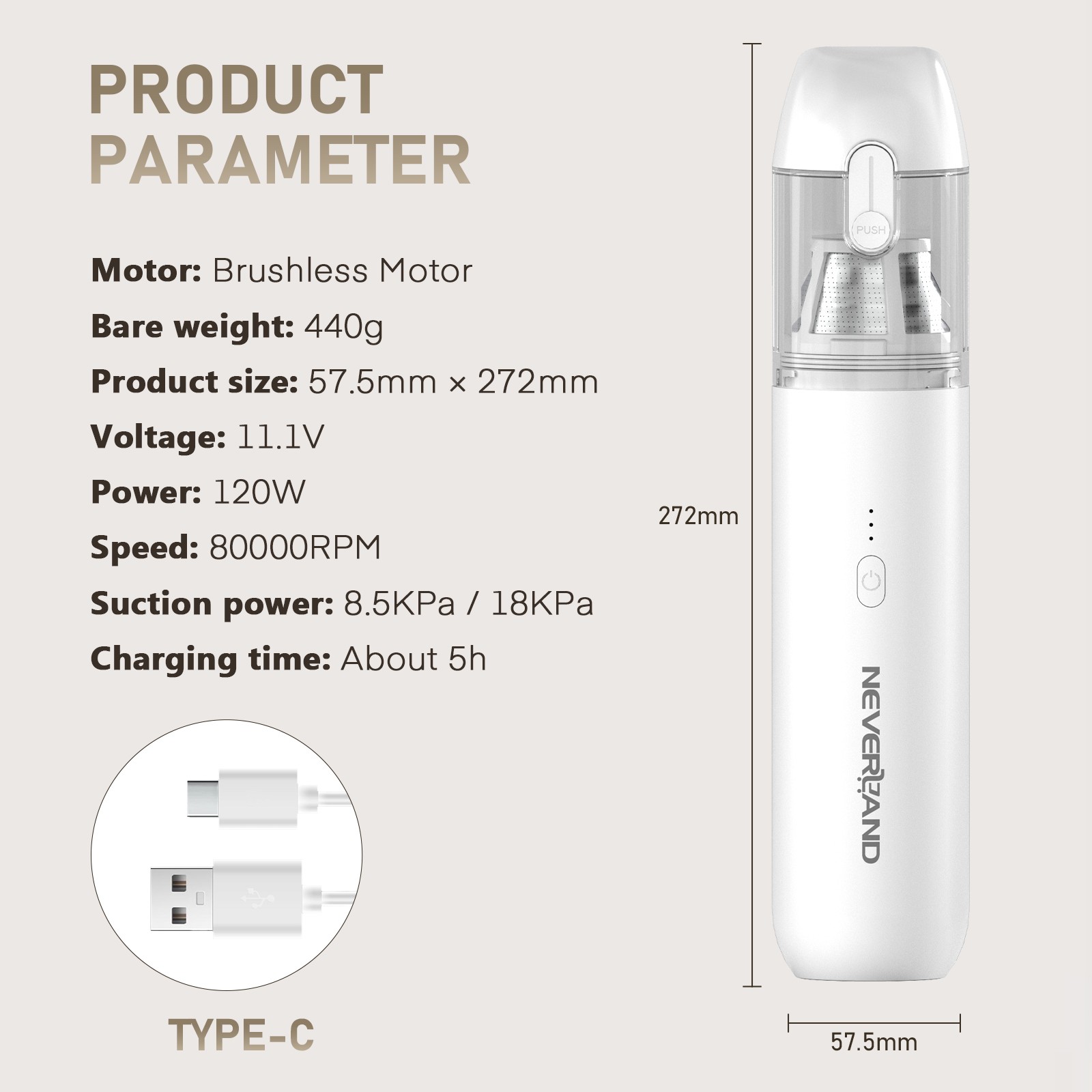 Cordless Car Vacuum Portable Mini Cleaner 120W High Power Handheld Rechargeable
