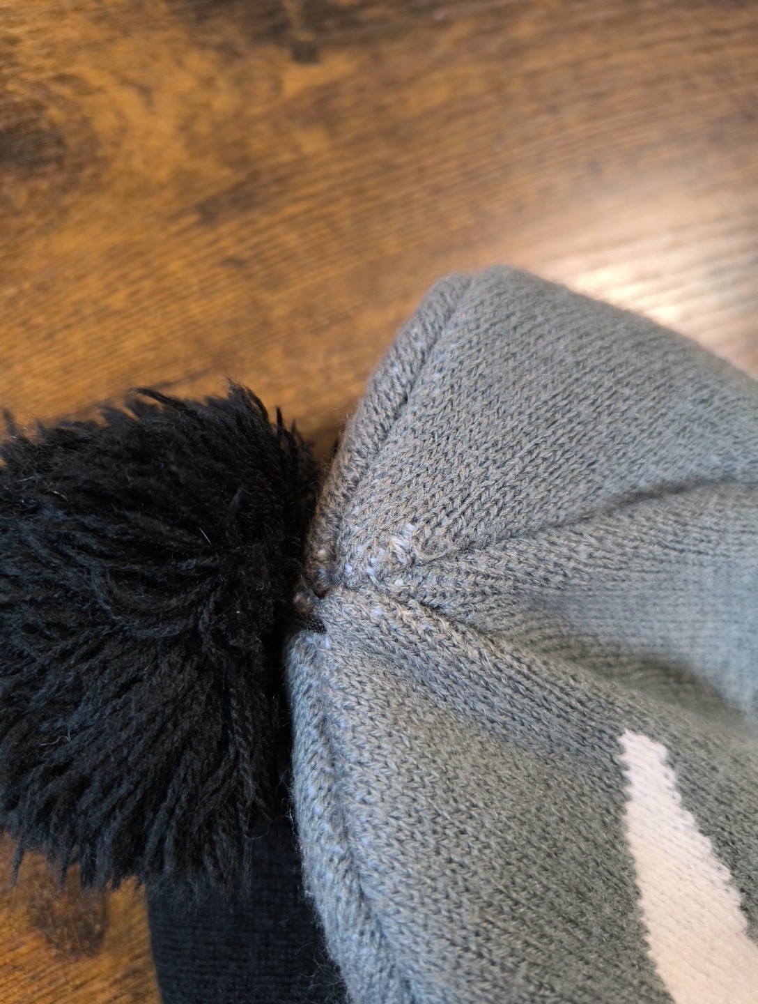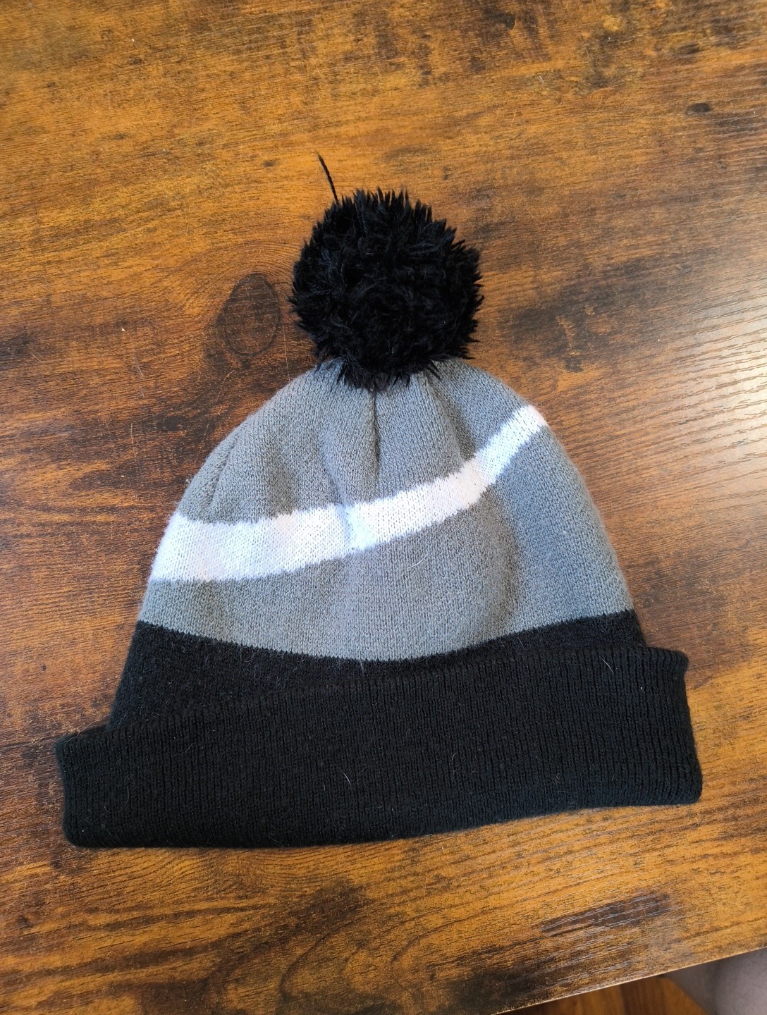 как выглядит Nike Youth Beanie Winter Hat Gray Black White Swoosh Child Minor Damage Read Des фото