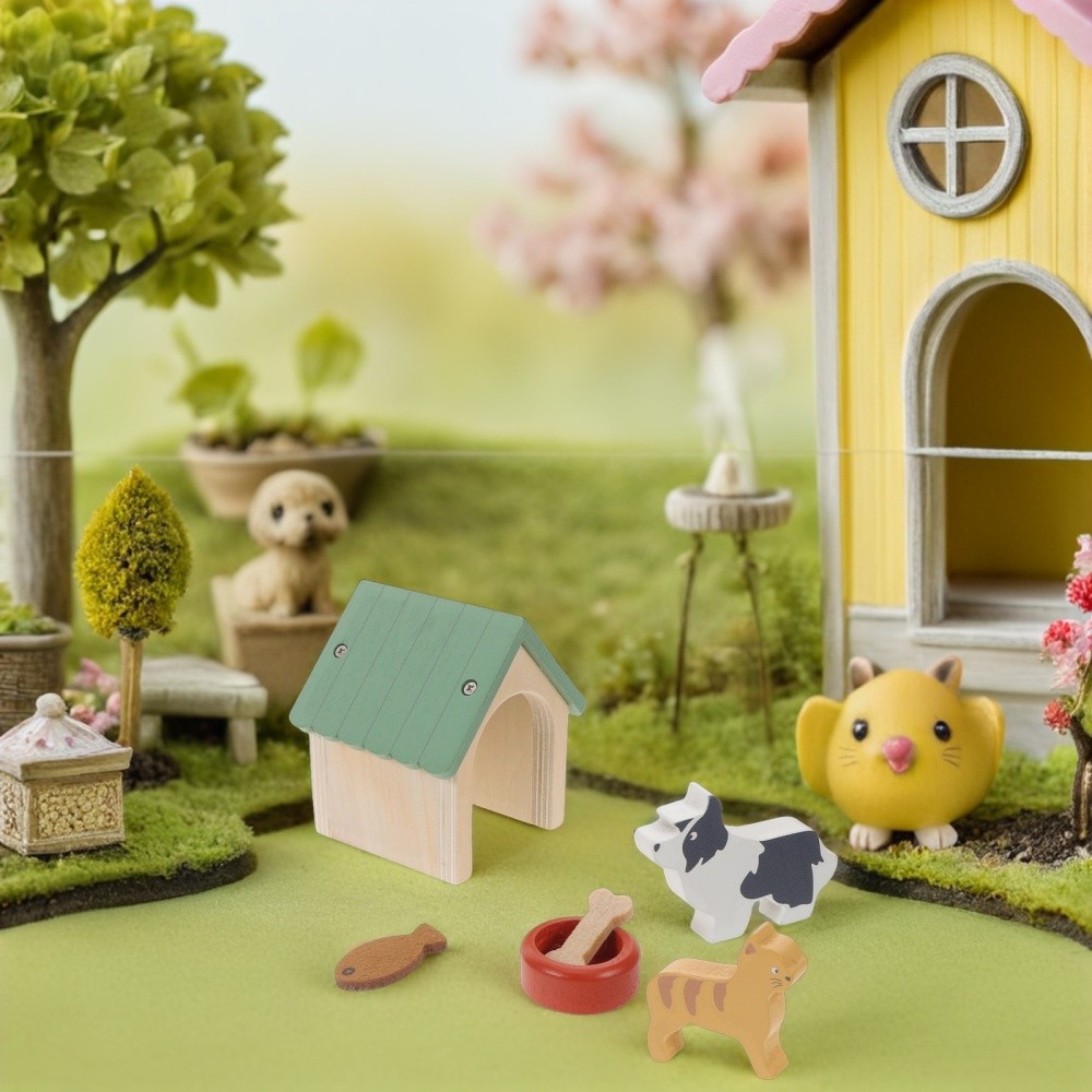 Pet Simulation Feeding Set Doll House Decoration Dog Kennels Toys