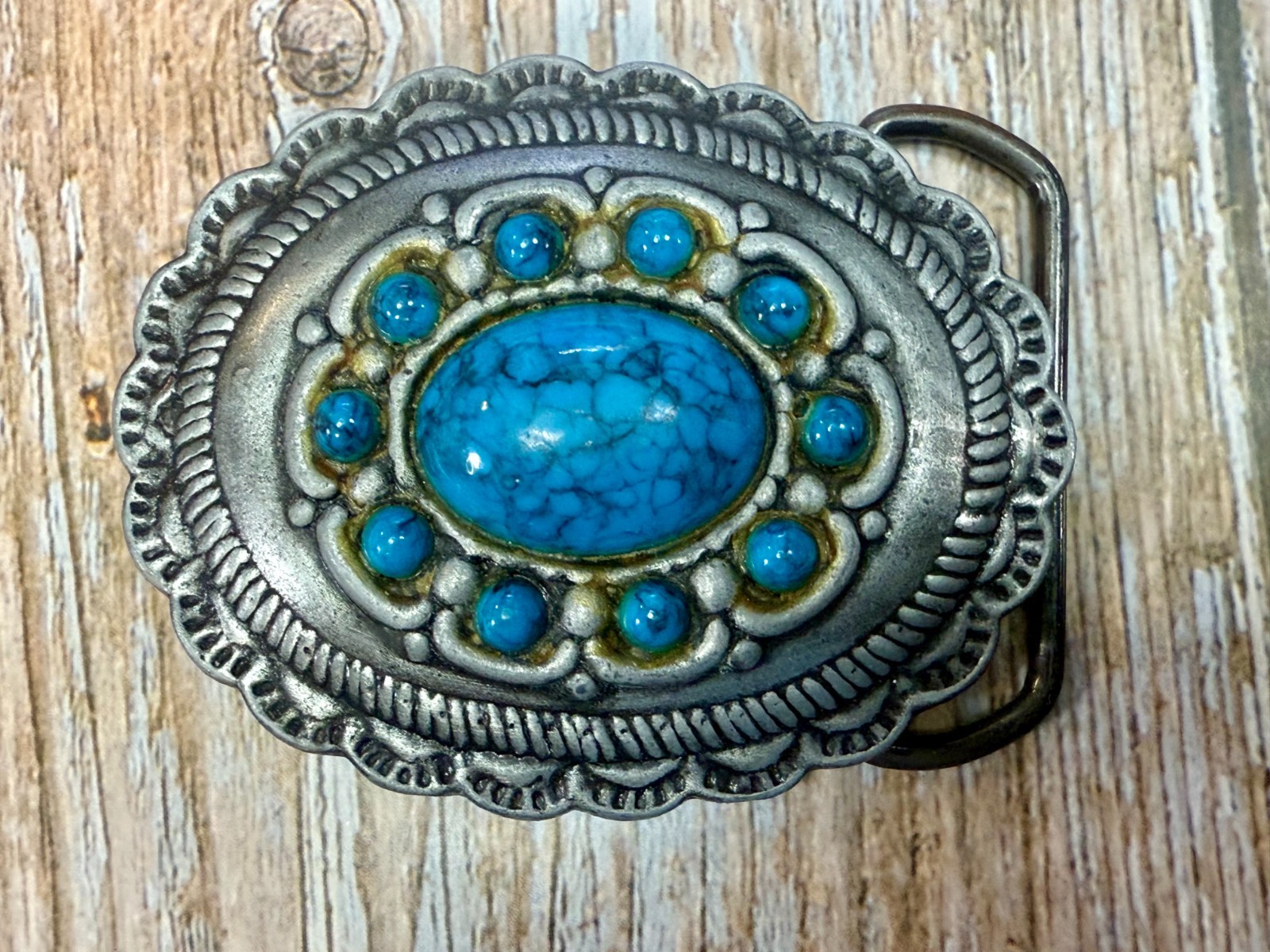 • Native American Faux Turquoise Concho Southwestern Style Oval Belt Buckle