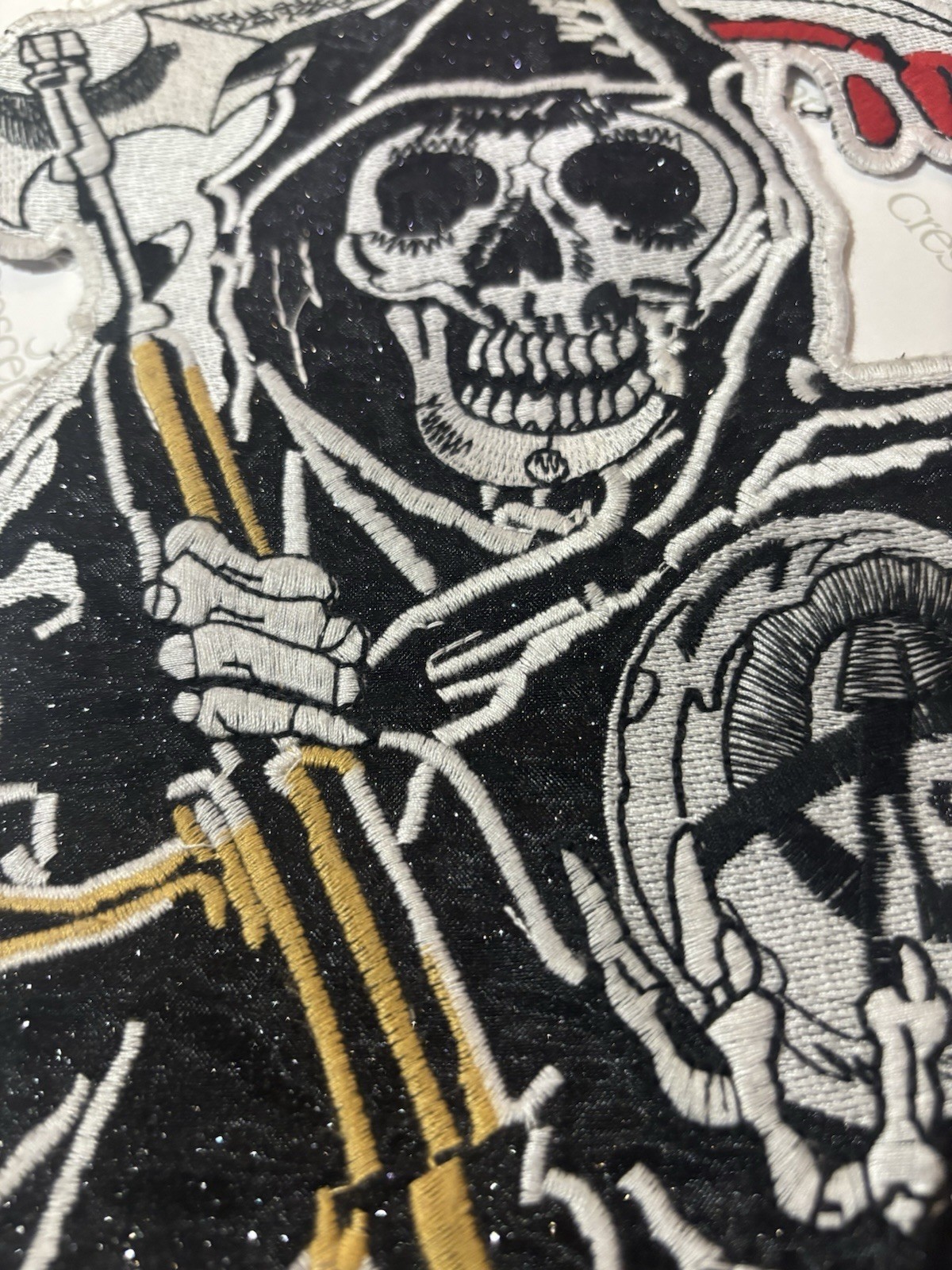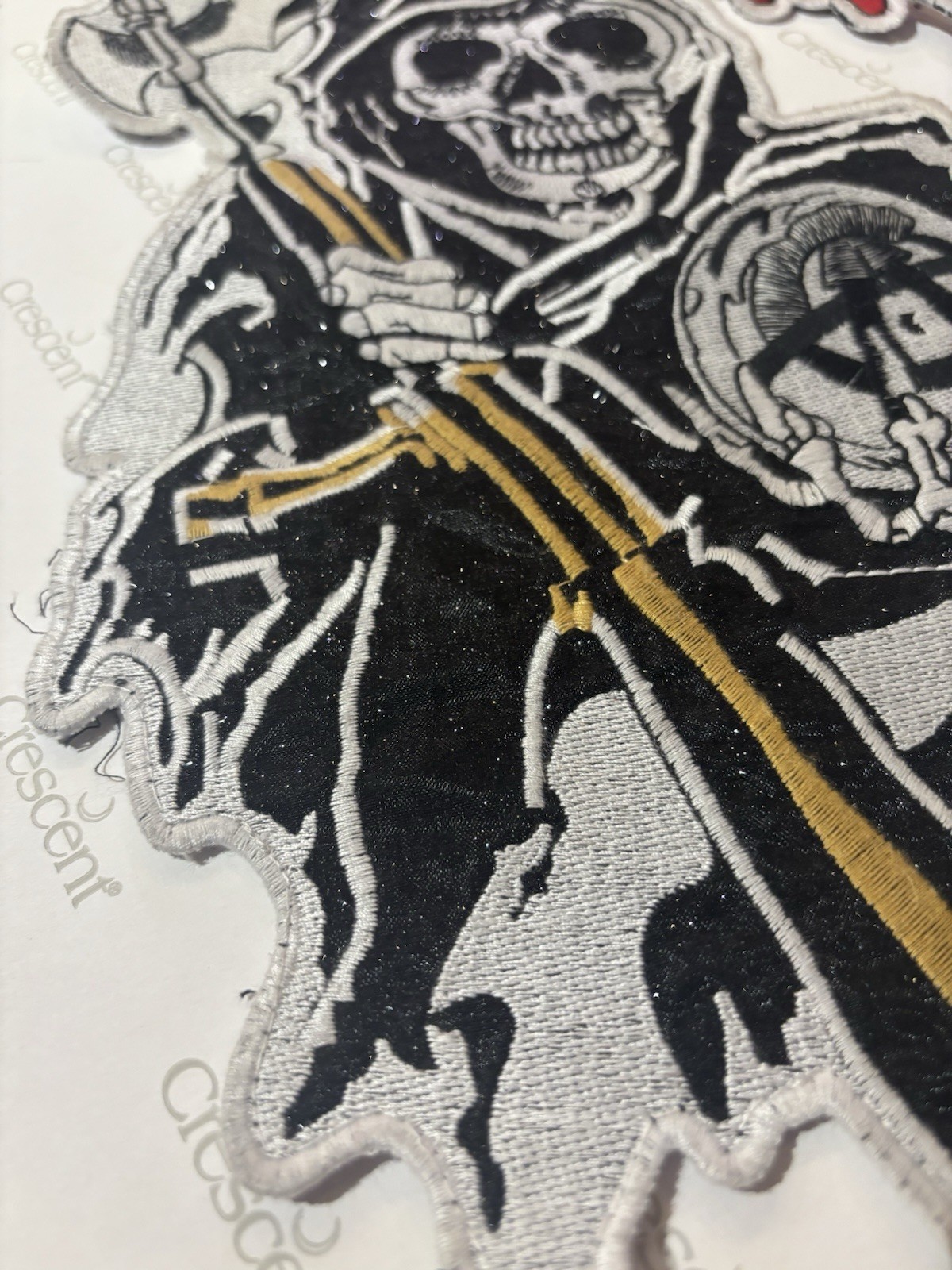 Large Grim Reaper Patch Scythe Death Glitter Biker Metal Tattoo Flash Anarchy