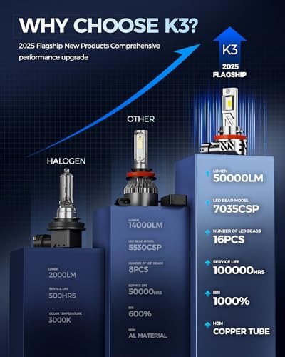 2025 10X Brightener H11 Led Bulb for Car Owners, 50000Lm H9 for Drivers K3 H11