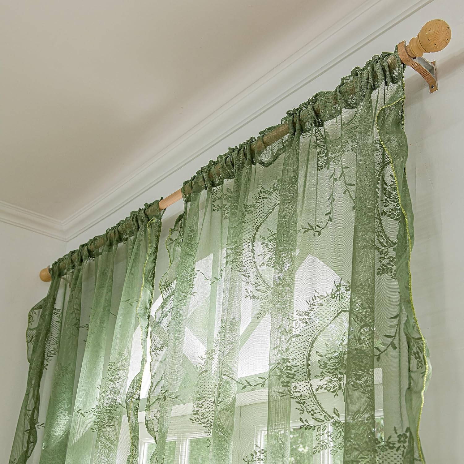 как выглядит Sutuo Home Olive Green Lace Curtains 57W x 84L Pack of 2 , Rose фото