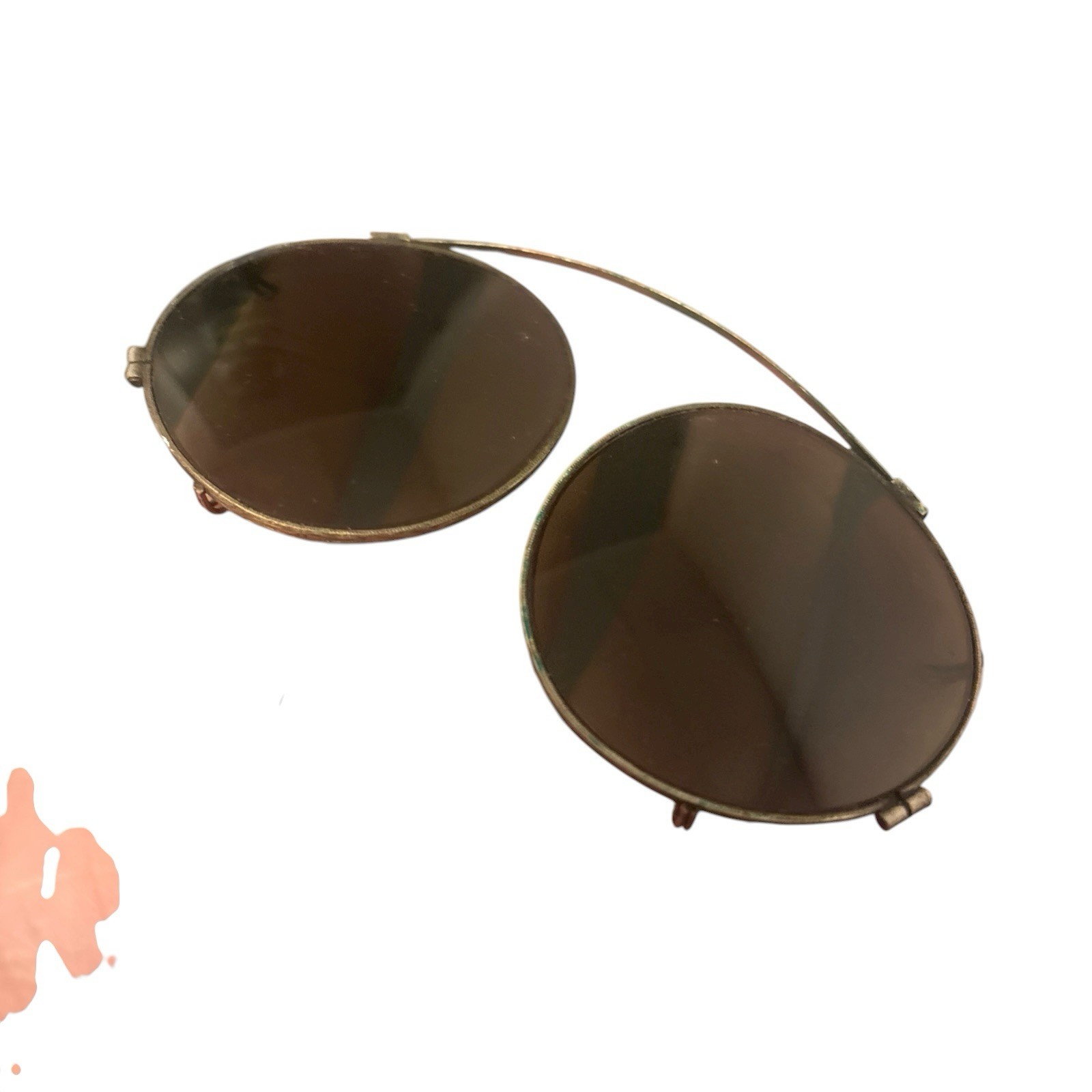 как выглядит Antique Clip On Sunglasses GOLD SCROLLING Greenish Tint INCLUDES LEATHER CASE фото