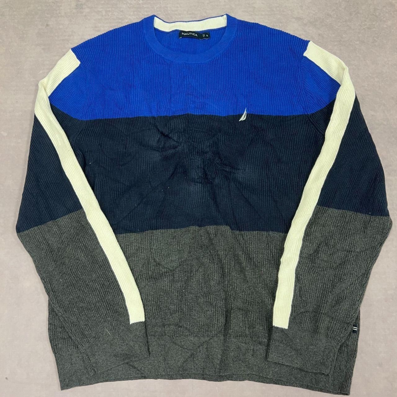 как выглядит Nautica Knitted Jumper Striped Patterned Chunky Knit Sweater Mens Xl фото