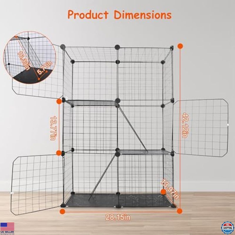 3-Tier Cat Cage - Indoor Enclosure, DIY Playpen, 3 Doors, 2 Ramps for 1-2 Cats