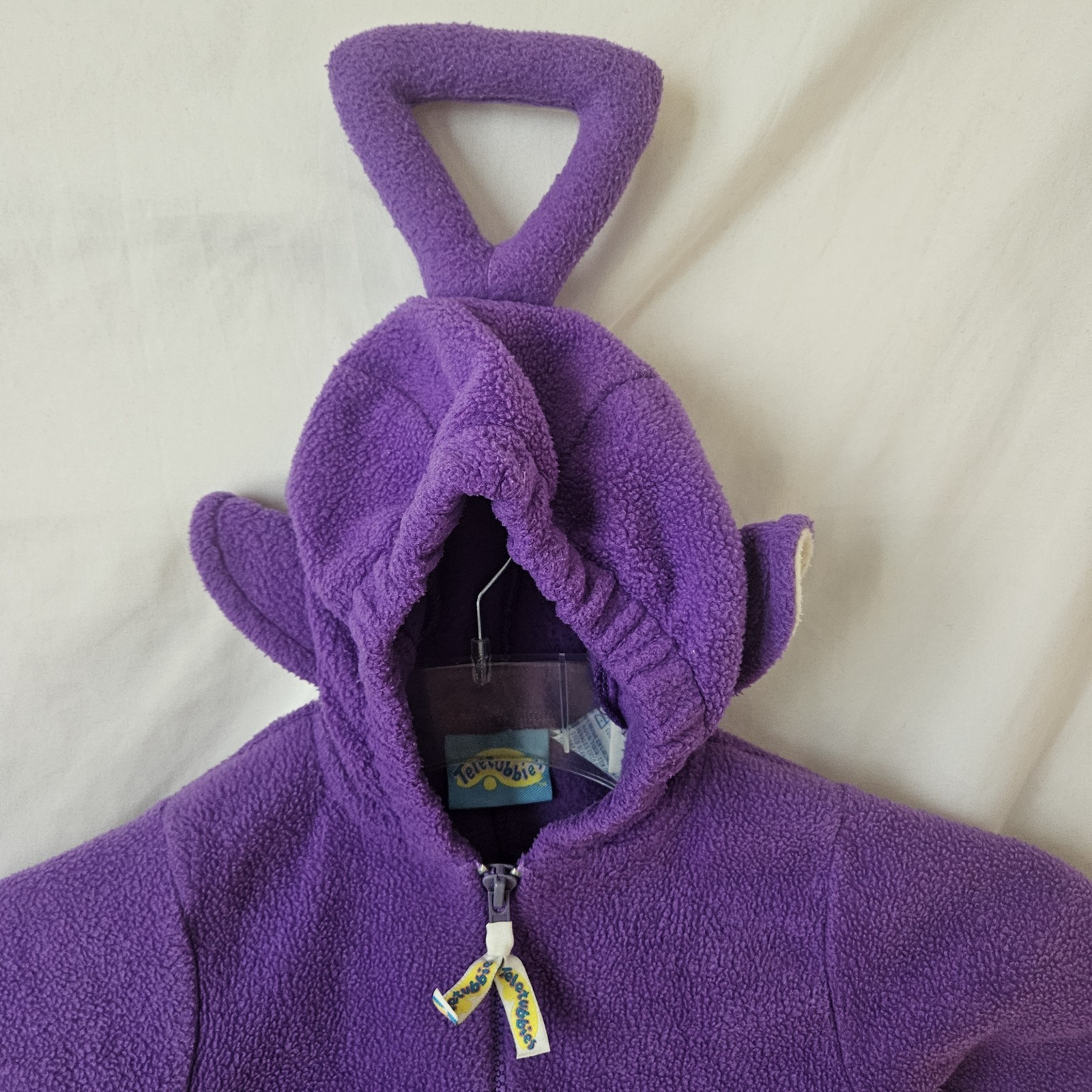 Vintage 1999 Teletubbies Tinky Winky Toddler Costume 24M Fleece Romper Hooded