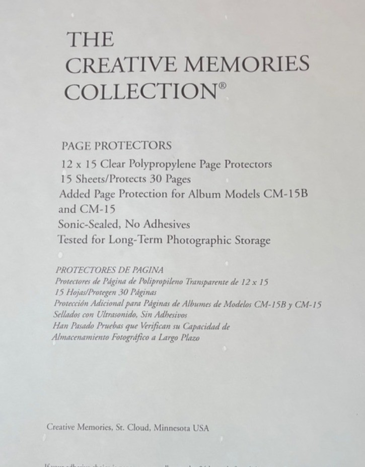 Creative Memories 12x15 Page Protectors 15 Sheets Old Style New Old Size