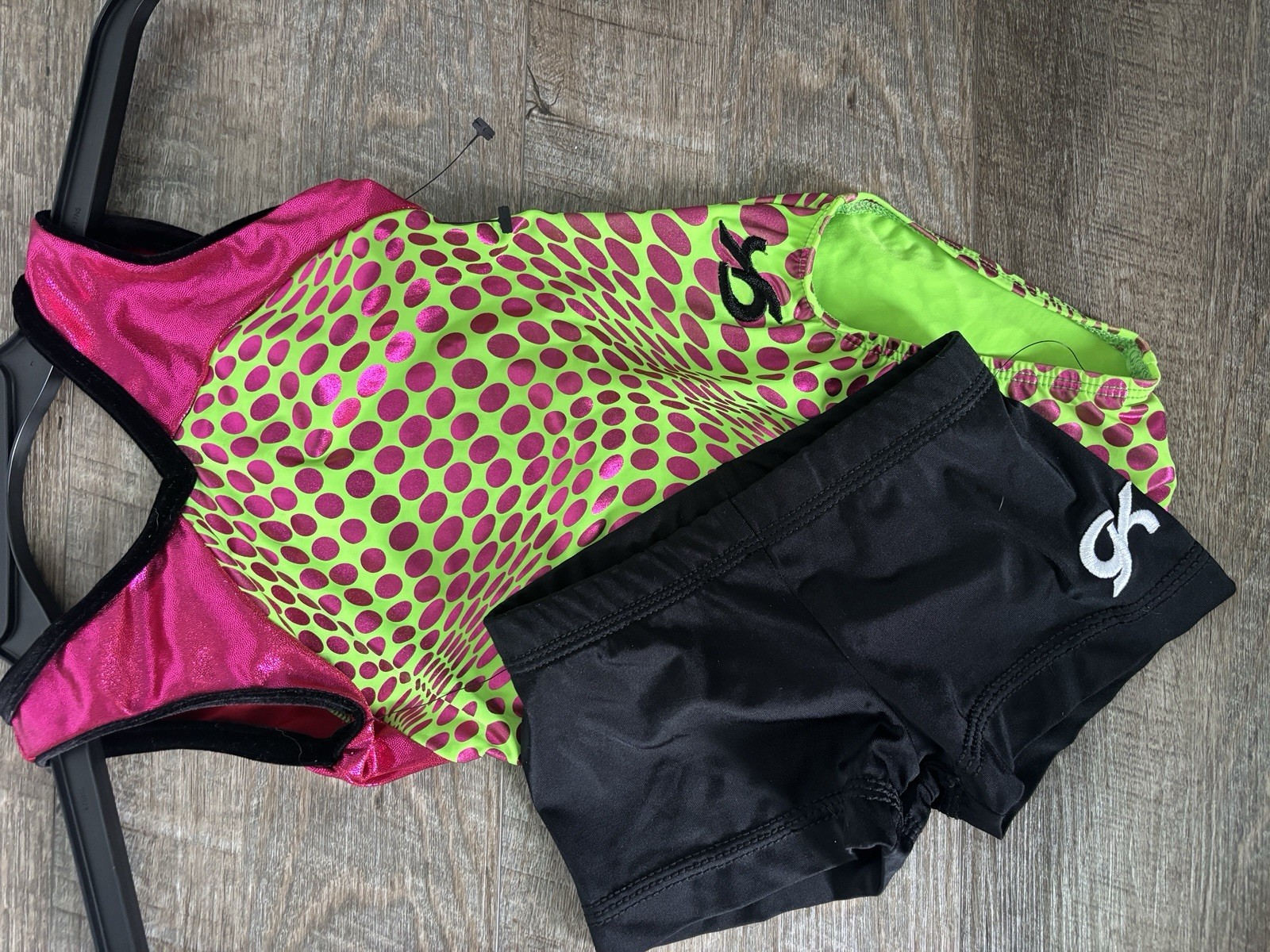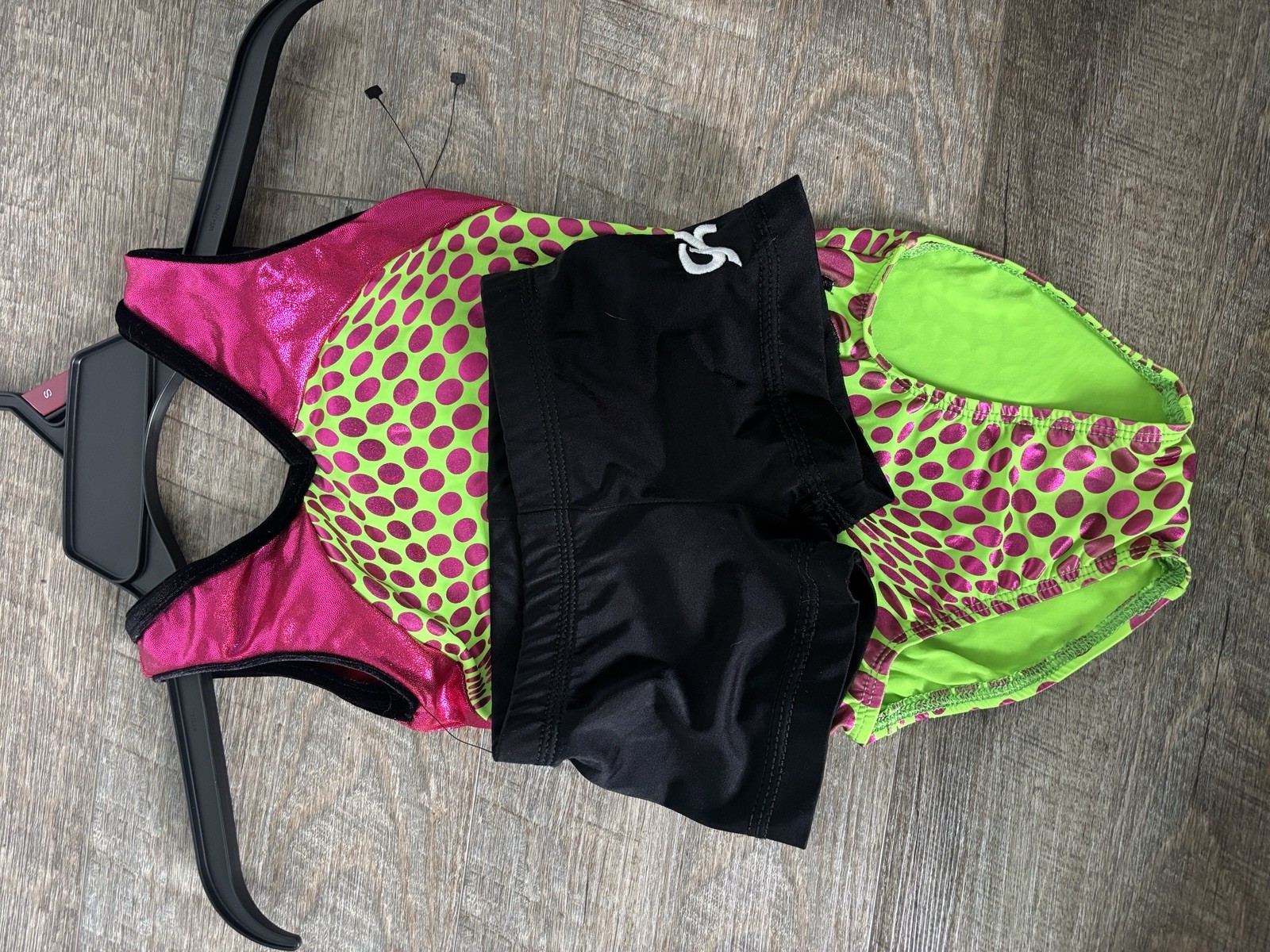 как выглядит GK Elite Pink and Green Polka Dot Gymnastics Leotard фото