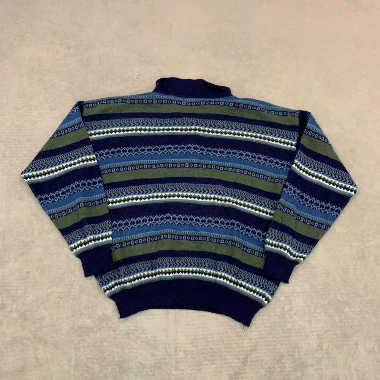 как выглядит Vintage Knitted Jumper abstract patterned 1/4 button grandad knit sweater Mens фото
