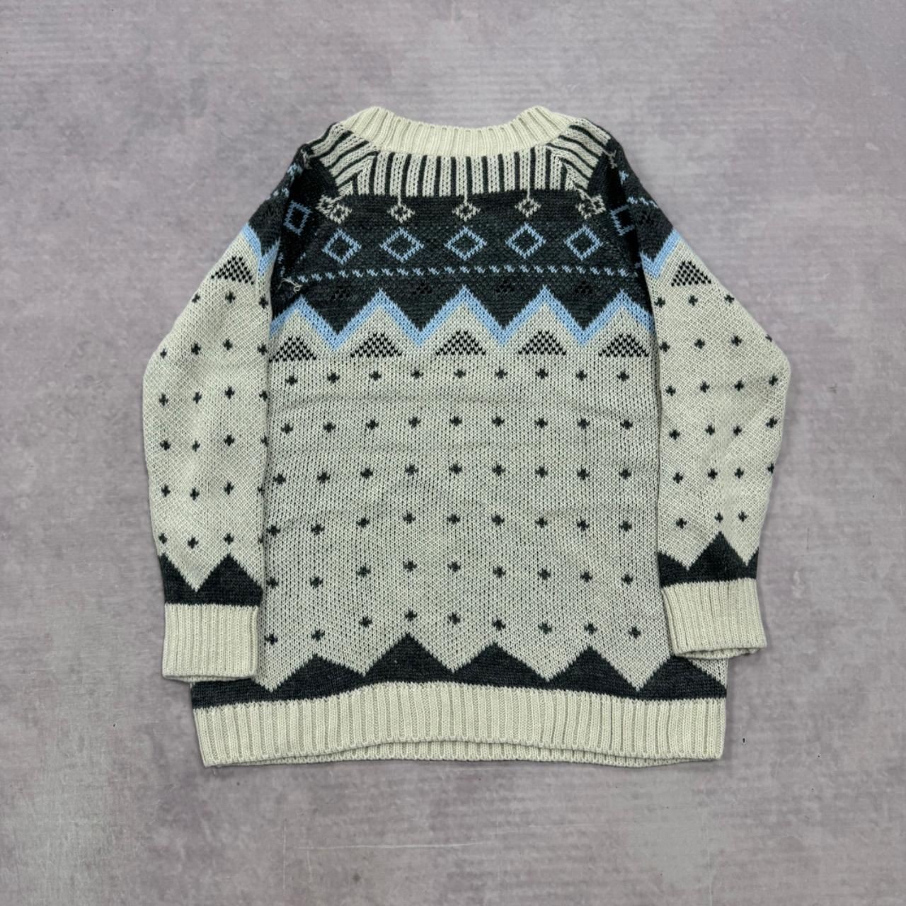 как выглядит Vintage Knitted Jumper abstract patterned knit sweater Women