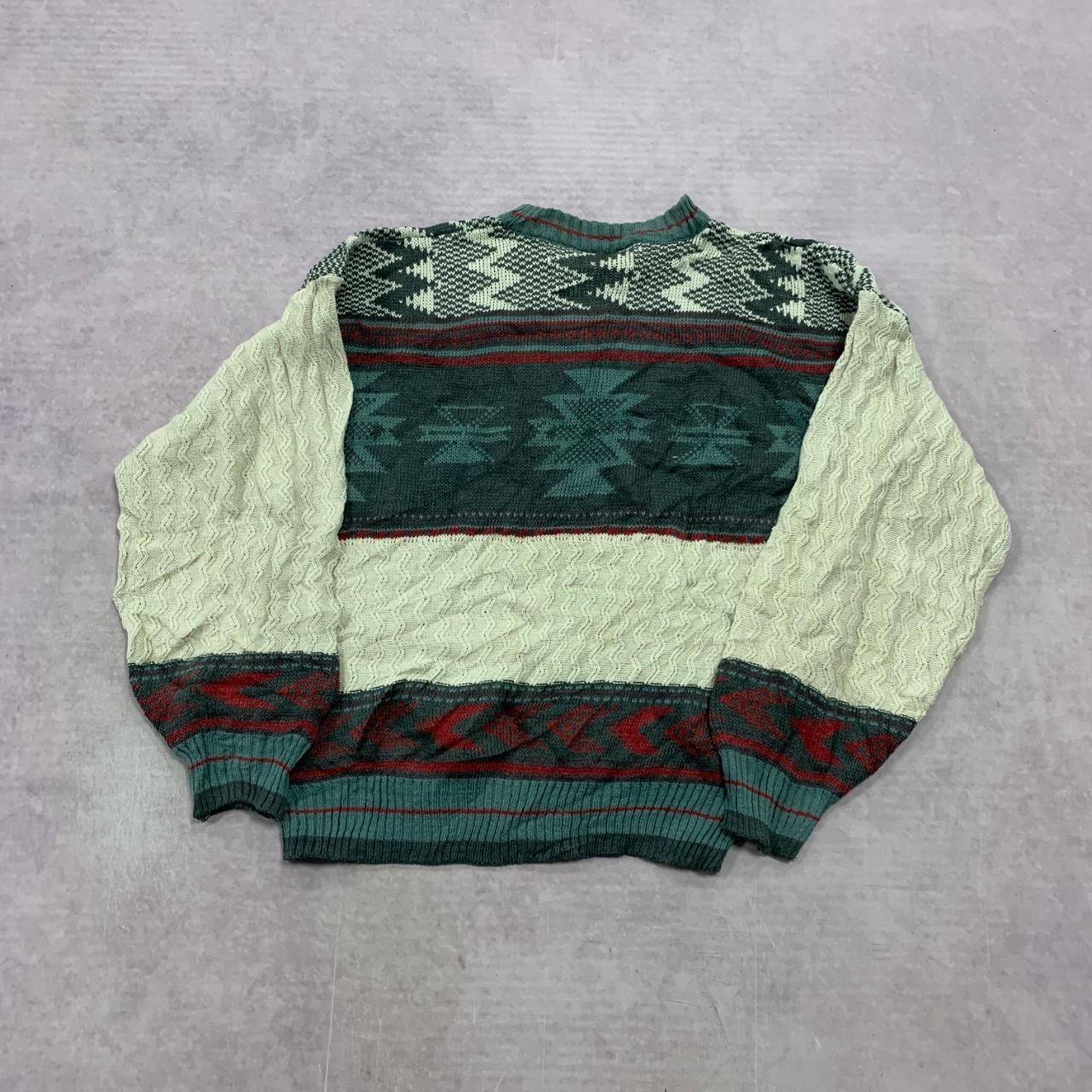как выглядит Vintage Knitted Jumper abstract patterned grandad knit sweater Mens L фото
