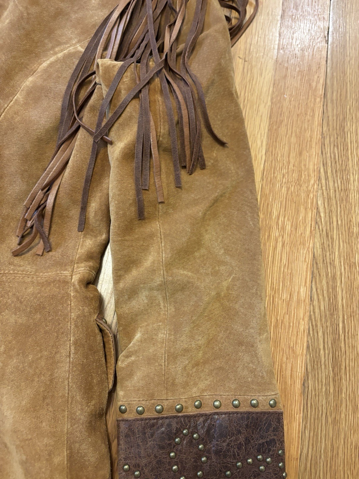 Vintage Scully Long Leather Suede Jacket Fringe Studded Western Cowgirl Size 4