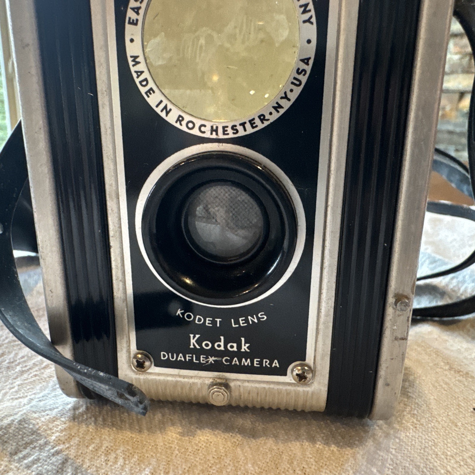 Kodak Duaflex Camera w/ Kodet Lens Vintage 1940s-50s Black Silver USA Not Tested