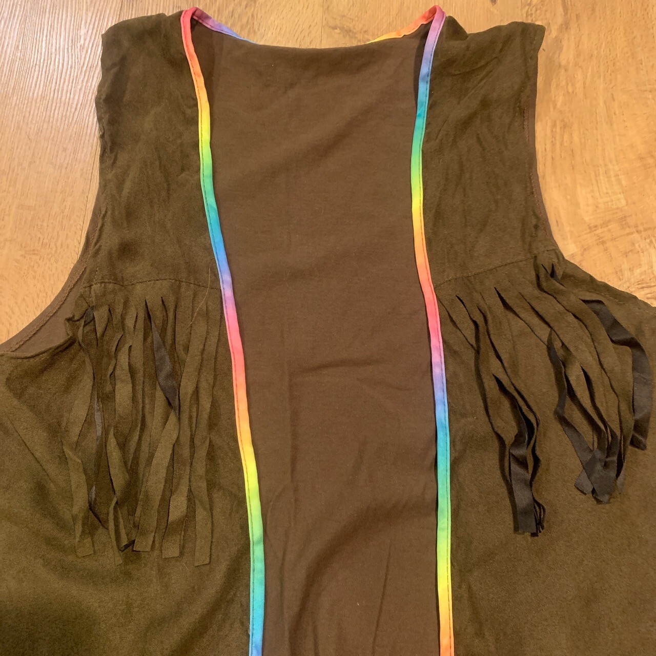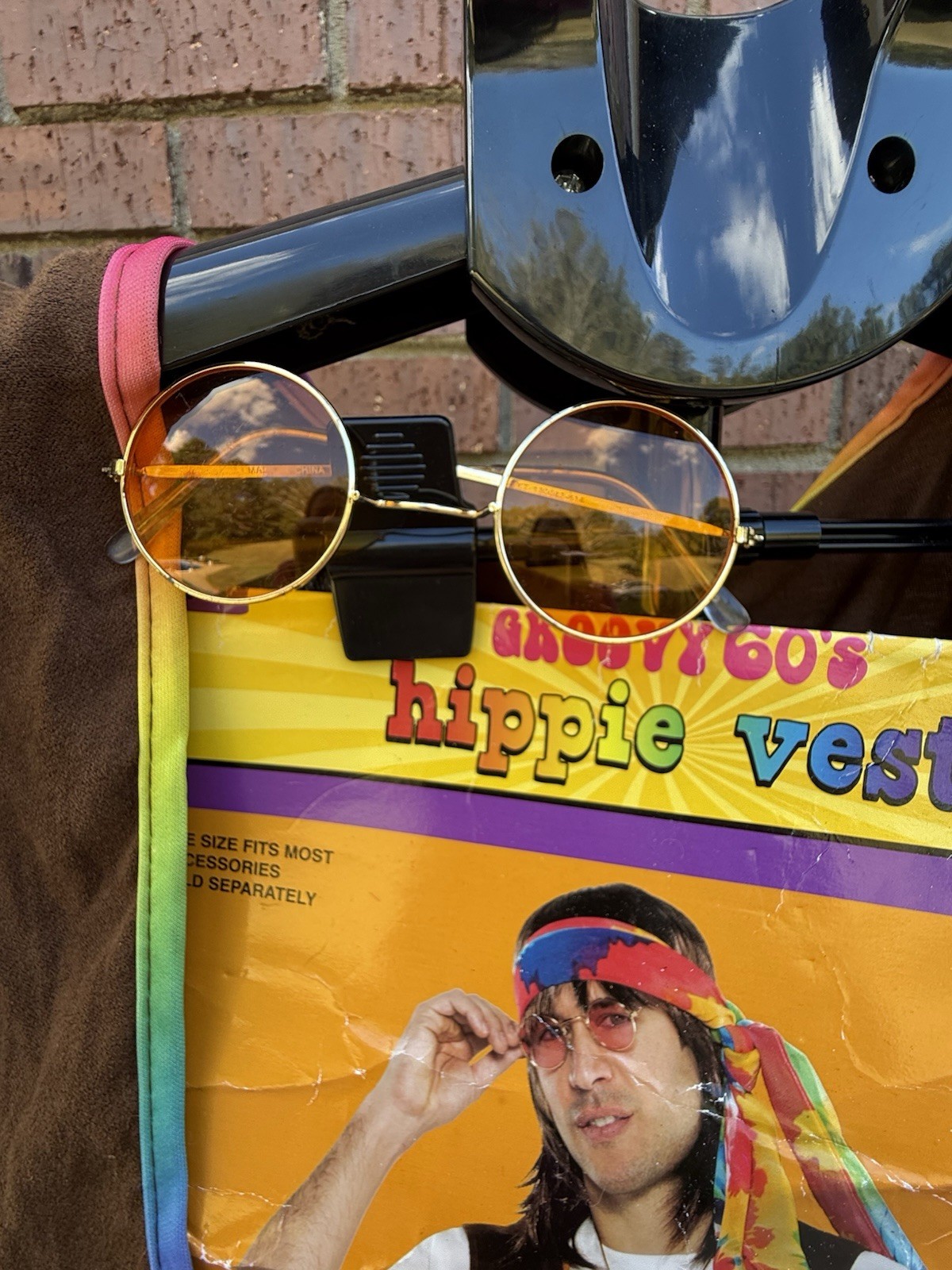 как выглядит Hippie 60s Groovy Fringe Halloween Costume Vest Pants Glasses Adult One Size фото