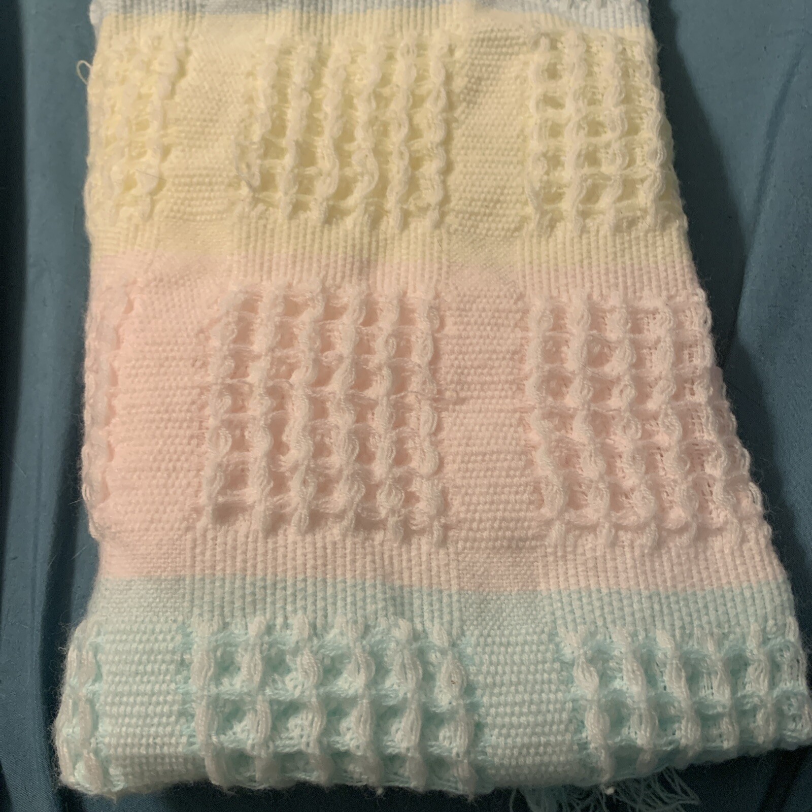 Babycrest Baby Blanket Pastels Color Block Acrylic Japan Fringe 34 x 34 Knit