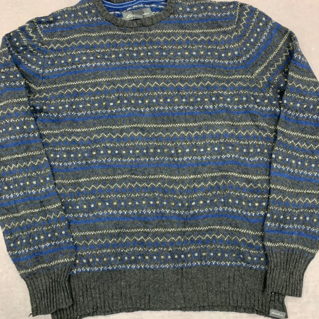 как выглядит Eddie Bauer Knitted Jumper abstract patterned pullover knit sweater Mens L фото