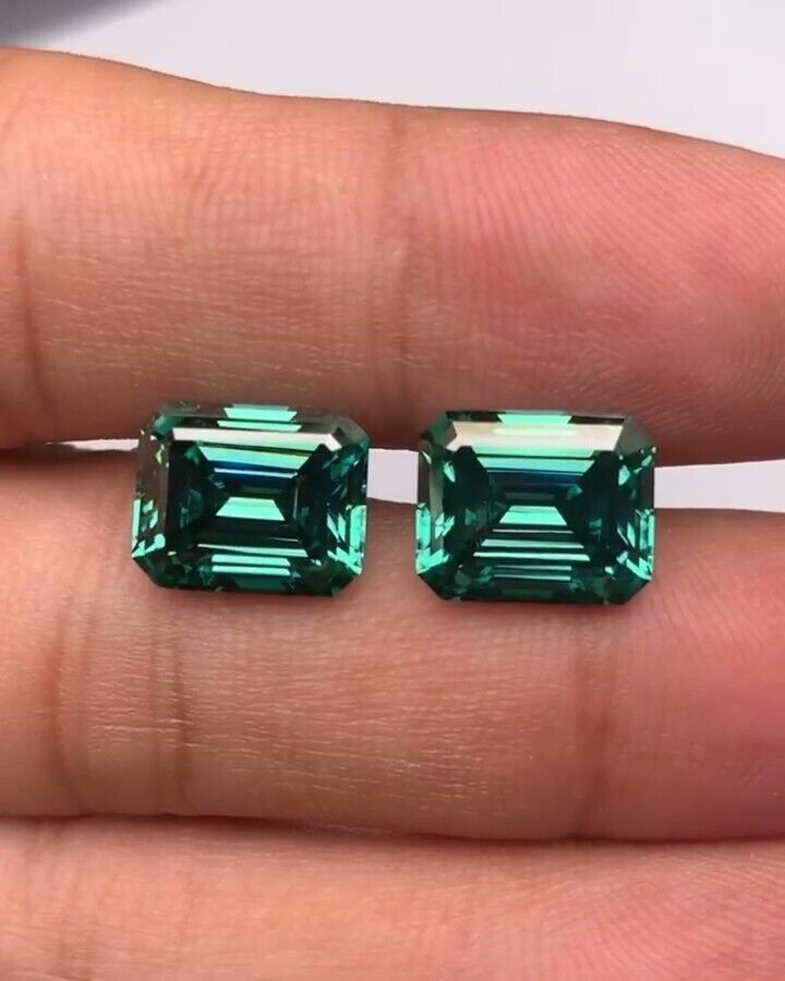 Pair of 3 Ct, Lab Grown Diamond Emerald Cut Green VVS1 Clarity Diamond Certified