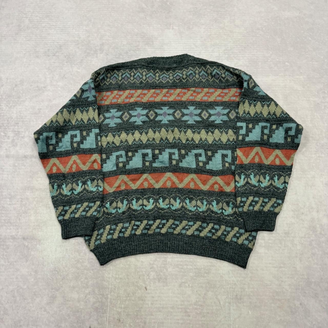 как выглядит Vintage Knitted Jumper abstract patterned grandad knit sweater Mens L фото