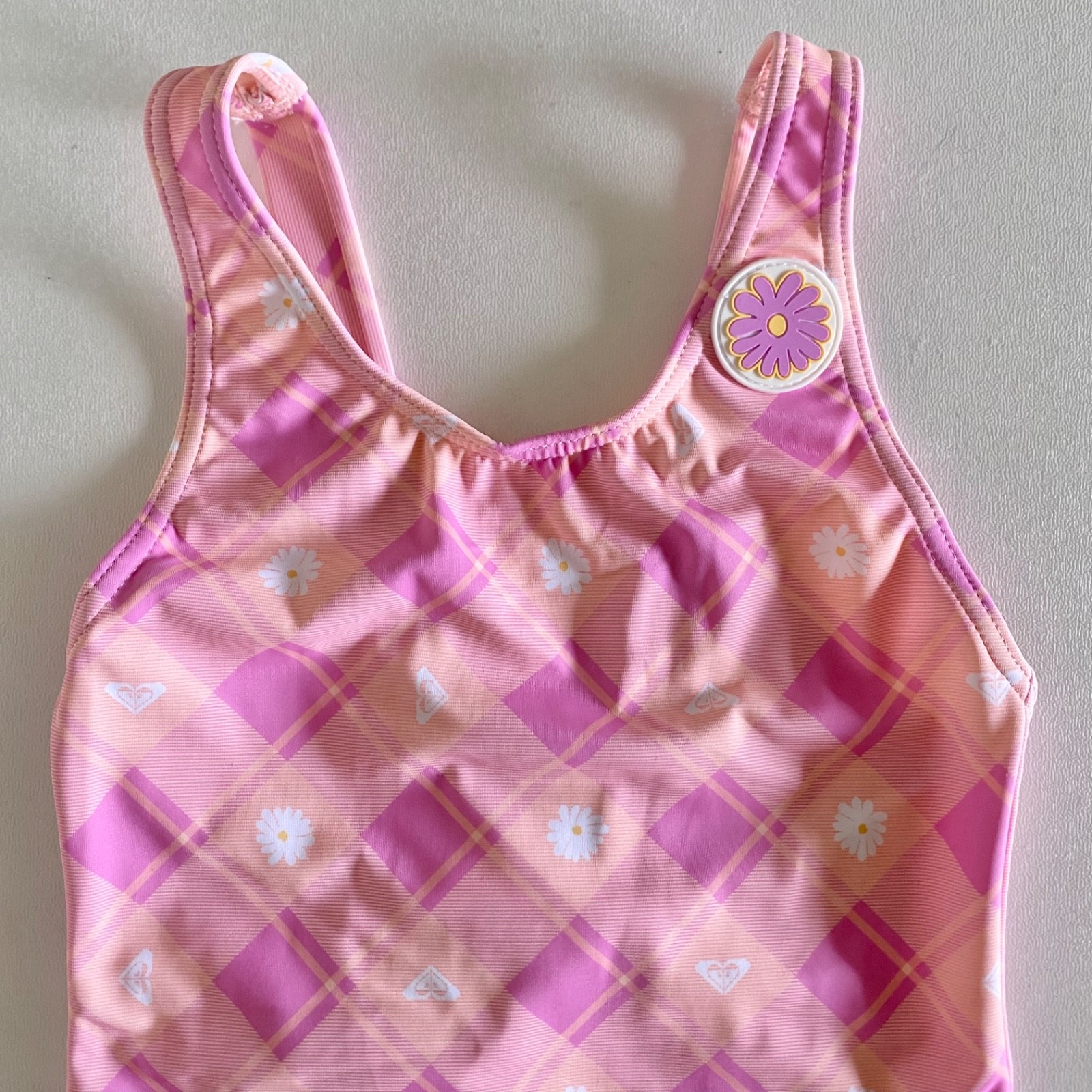 NEW Roxy Girls Flower Plaid one piece swimsuit in pink -Size 6
