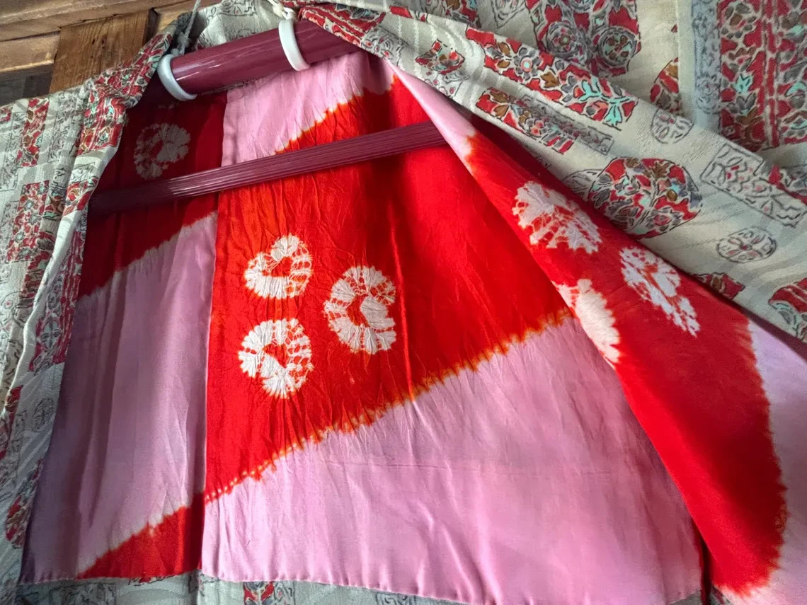 1950's Vintage Japanese HAORI Silk Kimono Gown Robe Vintage, length 95cm 37.4inc