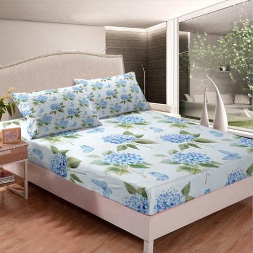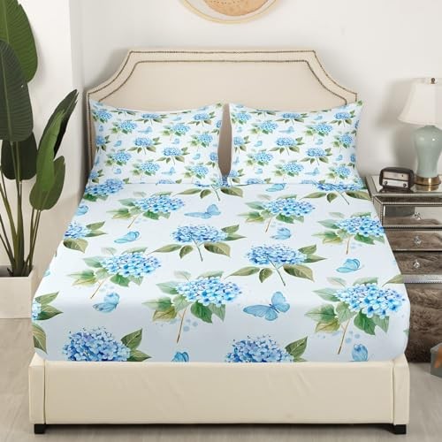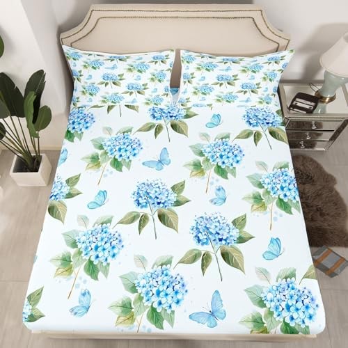 Blue Hydrangea Size Sheet Sets Chic Flower Sheets, Cute King Floral 11