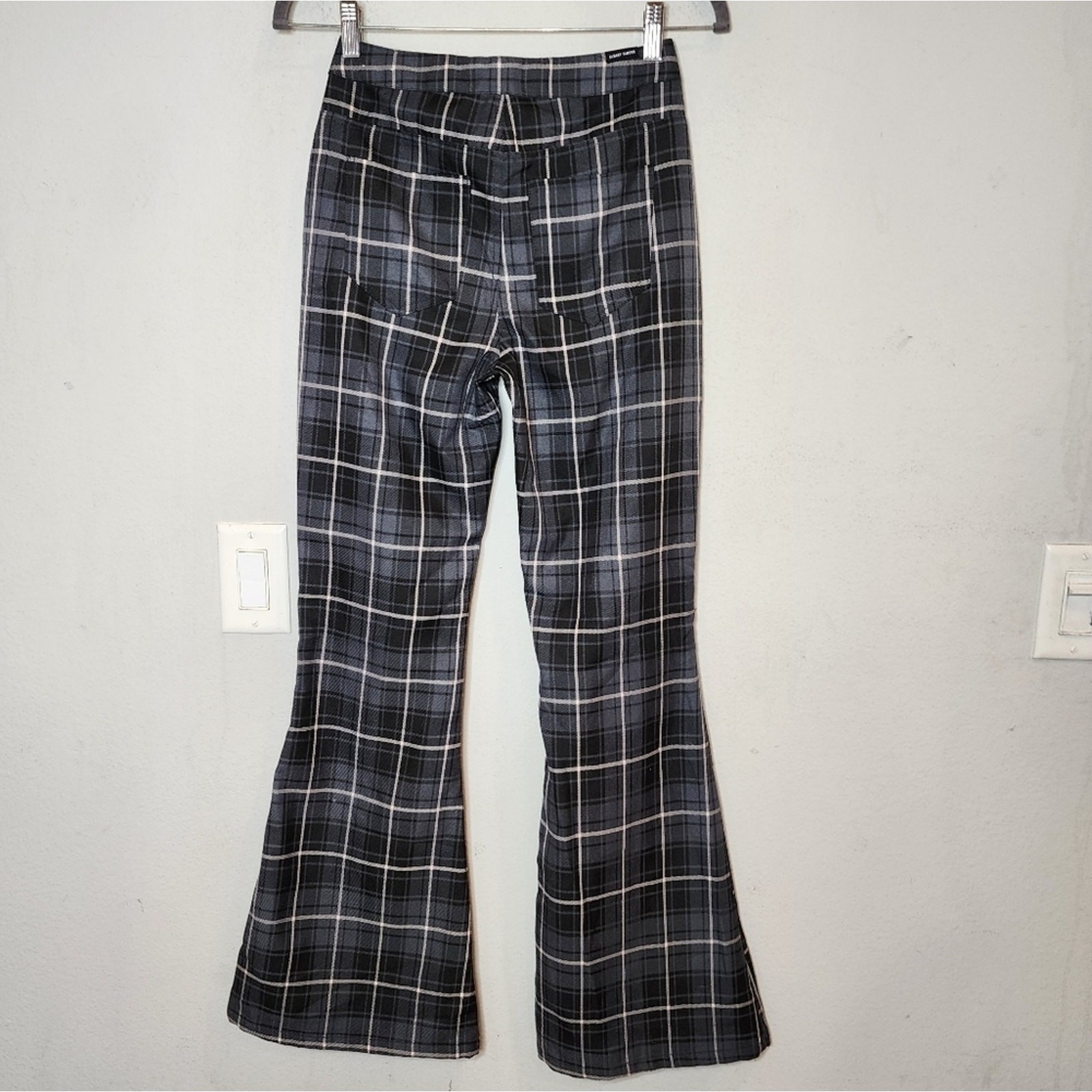 как выглядит Almost Famous Size 0 Black Grey Plaid Flare Pants New фото
