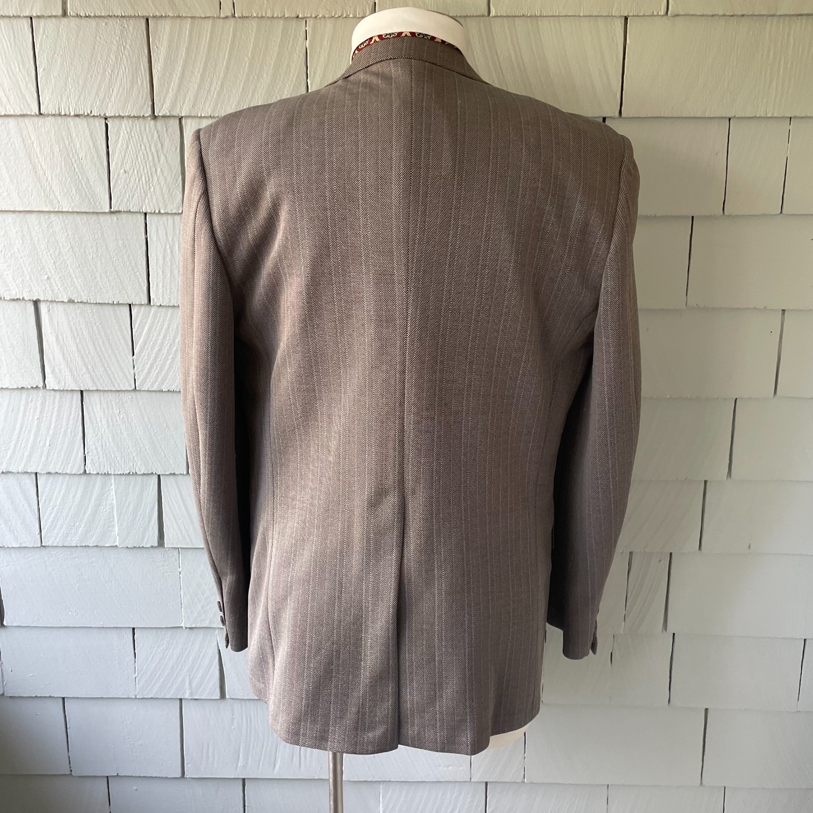 как выглядит 70s Vintage Don Richards Brown Pinstriped Mens 2pc Swanky Polyester Suit Size 46 фото