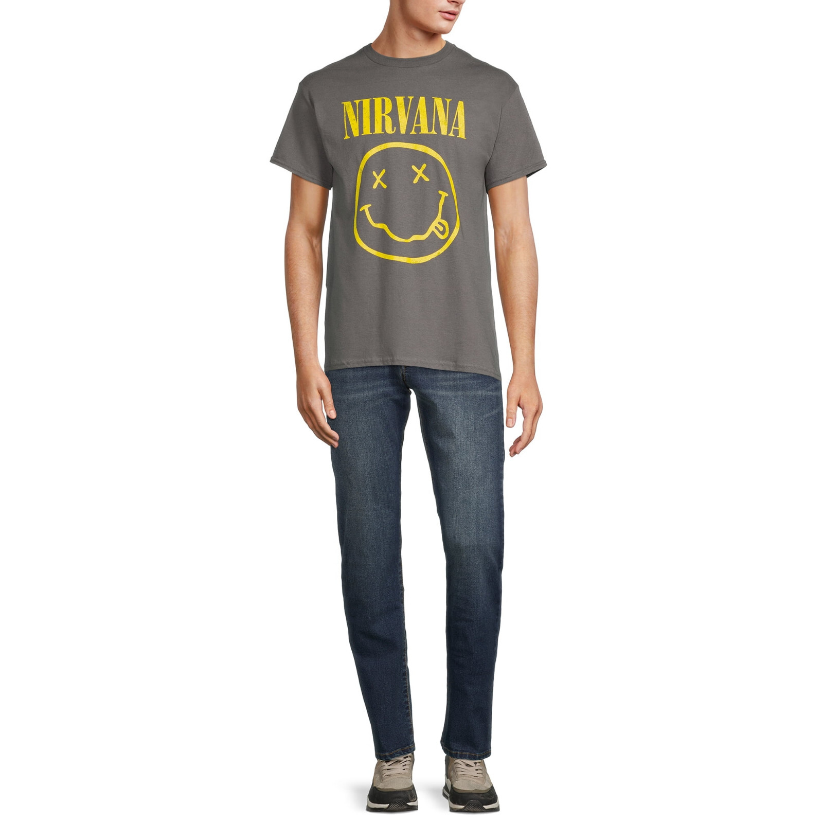 как выглядит Nirvana All Gender Smiley Logo Graphic Tee Shirt, Men