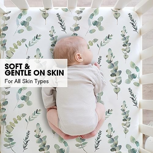 for Boys and Girls, 2pk Baby Crib Fitted Sheet for Crib Sheets Green Leaves