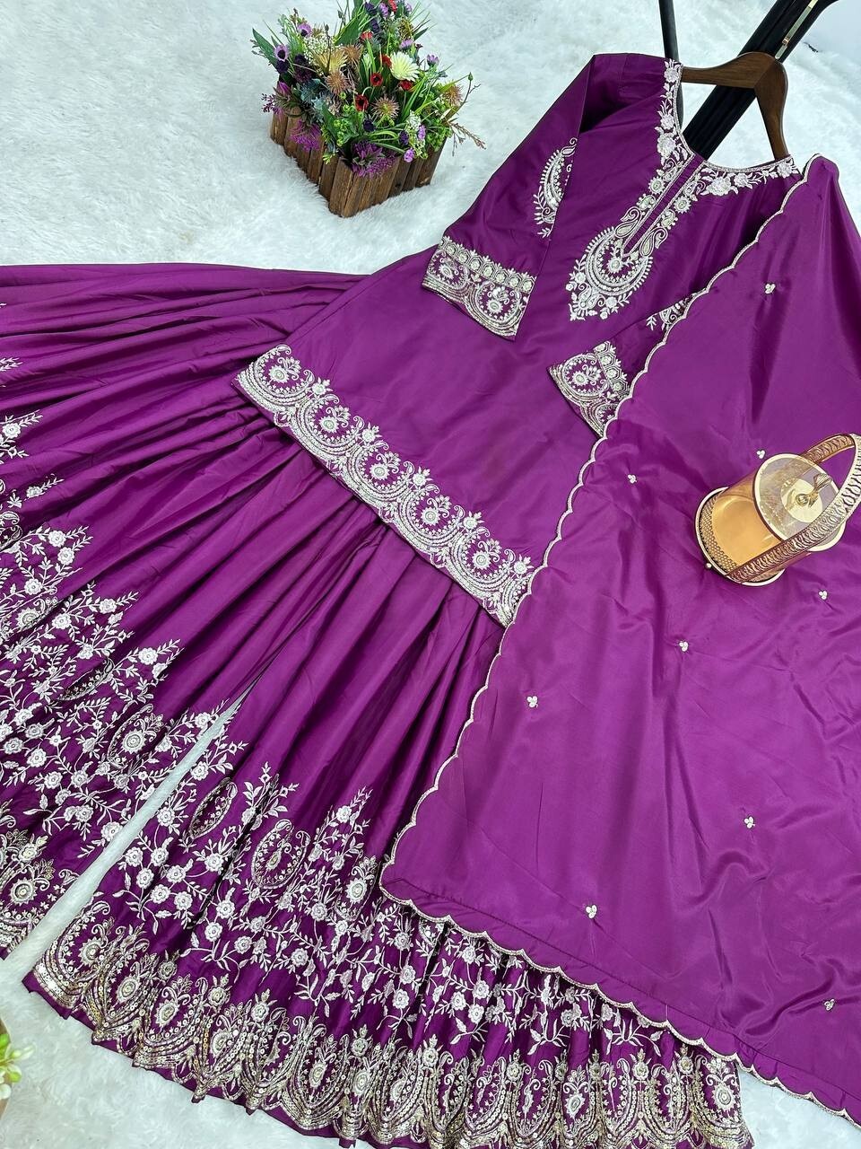 Palazzo Work: Heavy Embroidery Thread And Sequence Work