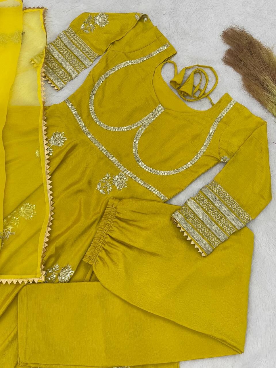 Presenting Chinnon Silk Yellow Gown Bottom With Dupatta For Functional Wear