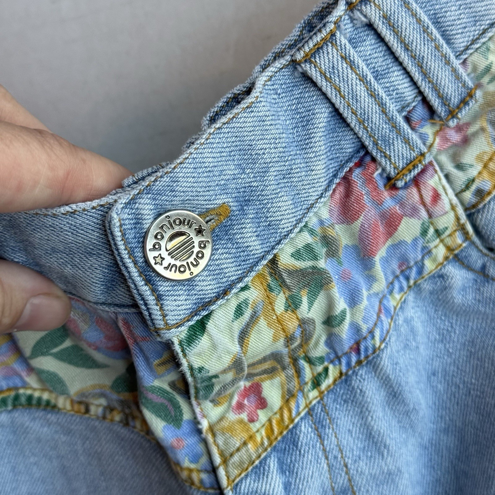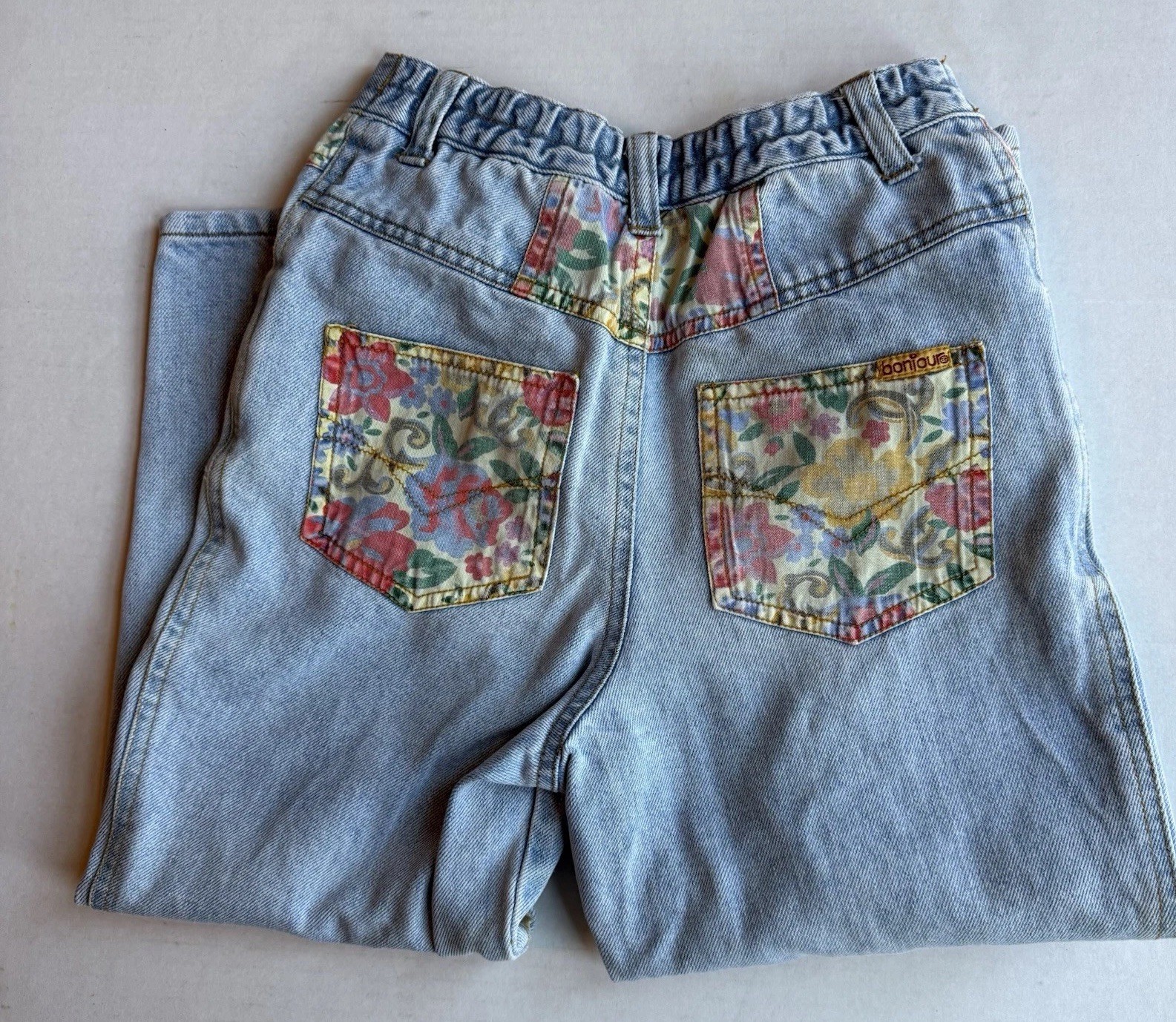 как выглядит VTG Girls Bonjour Straight Jeans Quilt Patchwork Light Floral 80 s 90 s Size 6 фото