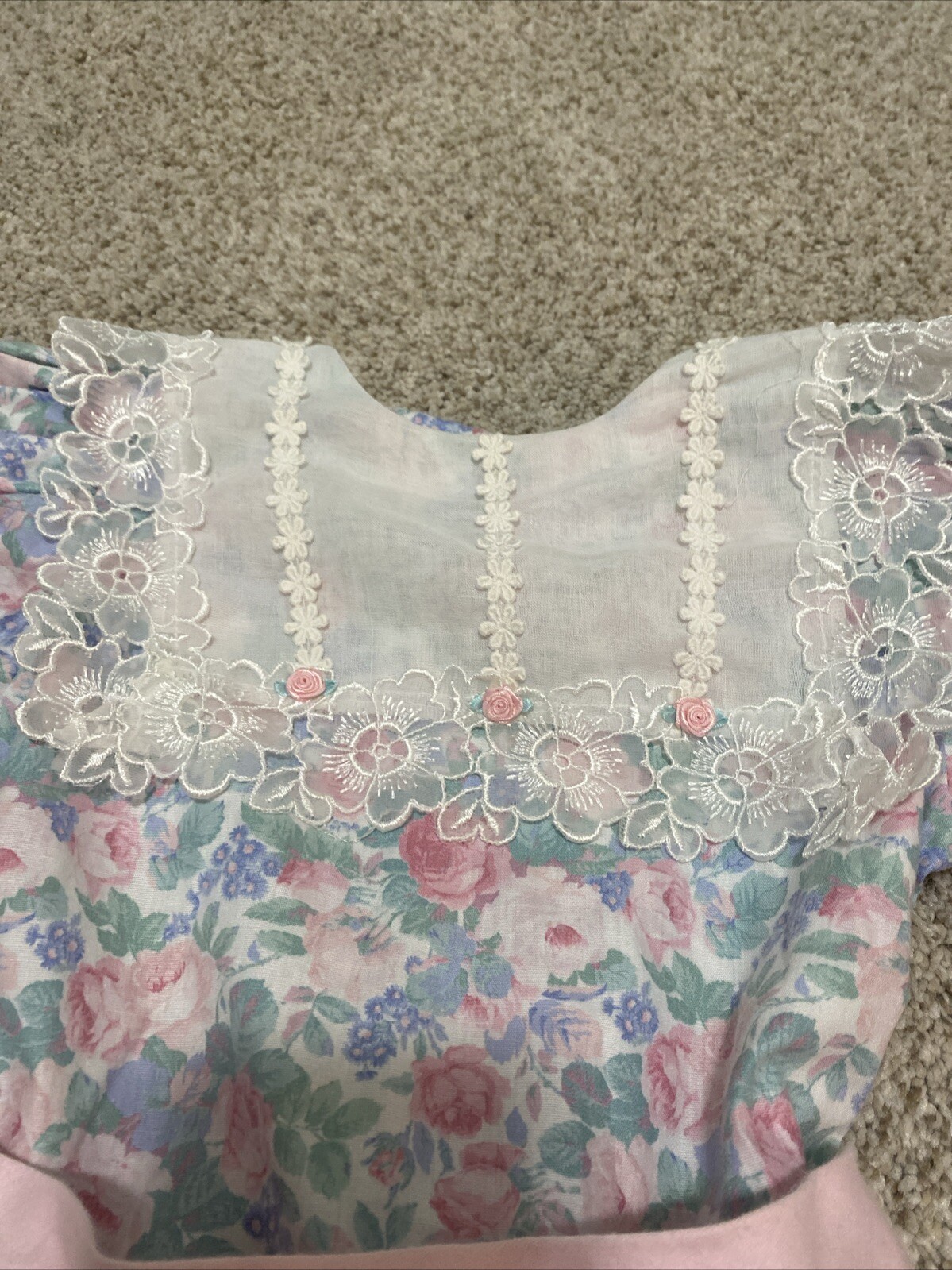как выглядит Vintage Girls Peaches n Cream Size 4 Dress Pastel Lace Floral фото