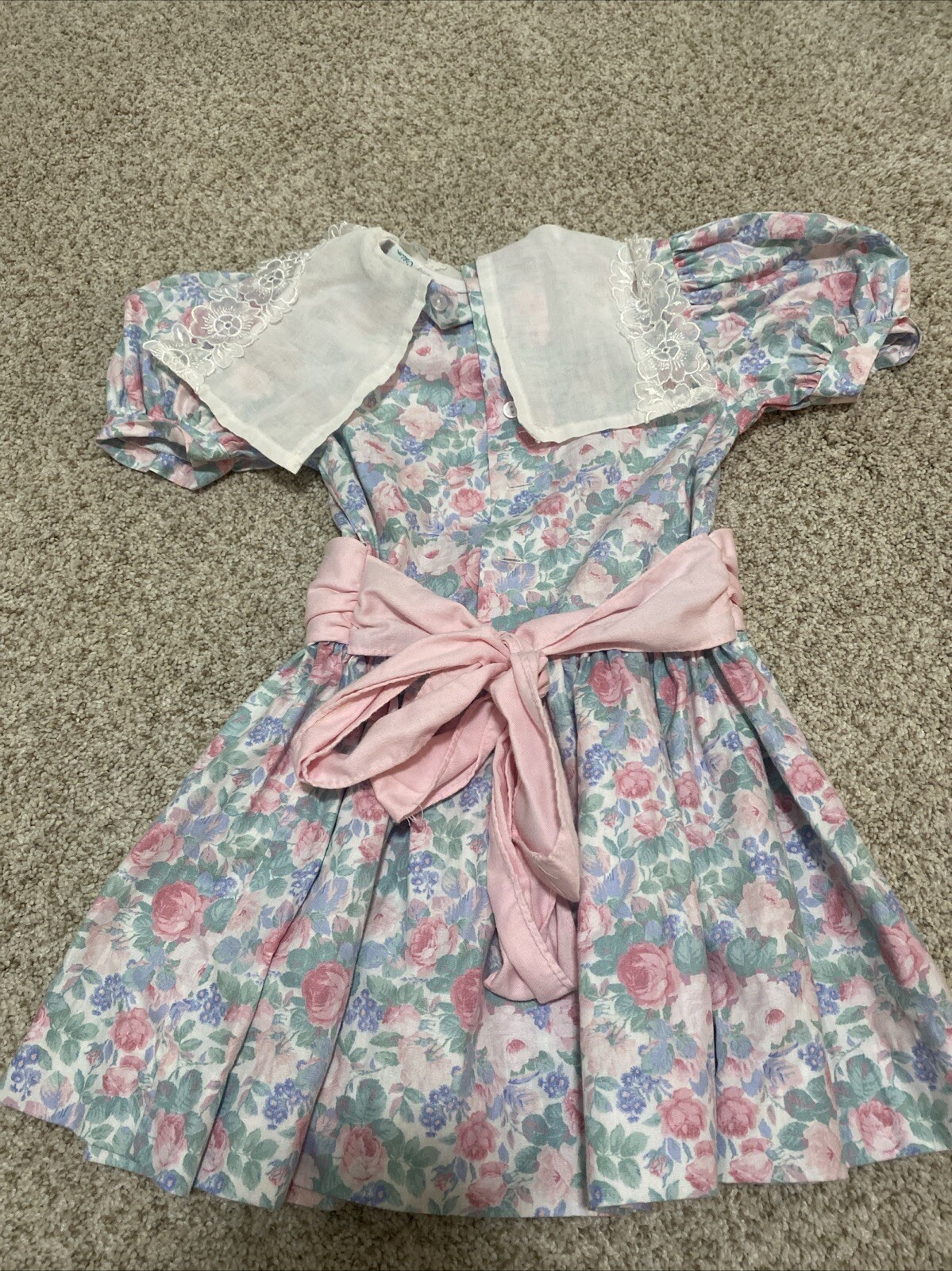 Vintage Girls Peaches n Cream Size 4 Dress Pastel Lace Floral