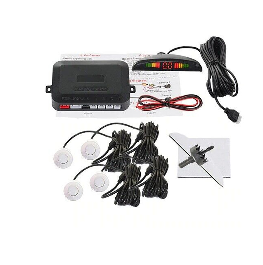 • 4 Parking Sensors LED Car Auto Backup Reverse Rear Radar System Alert Alarm Kit