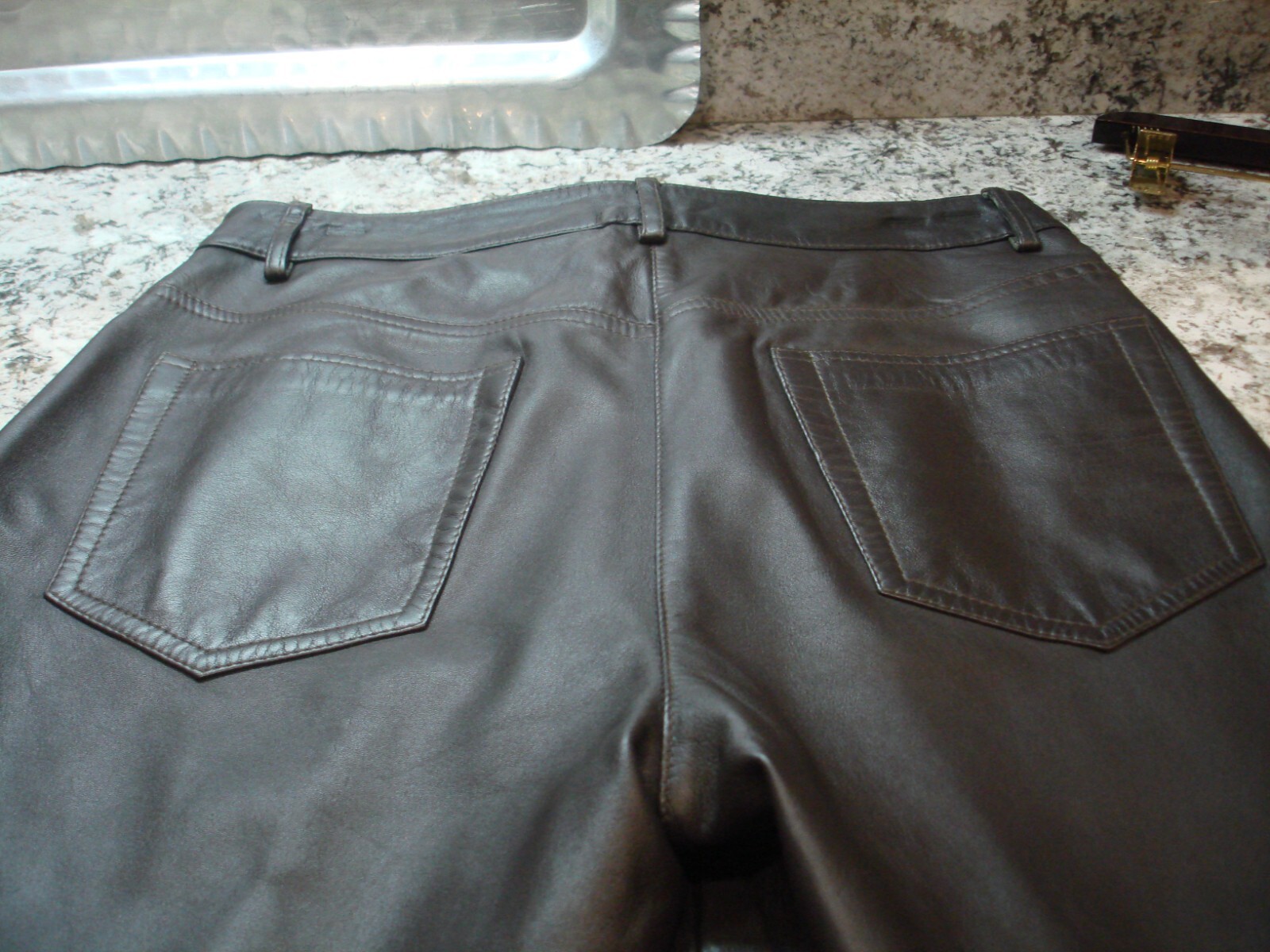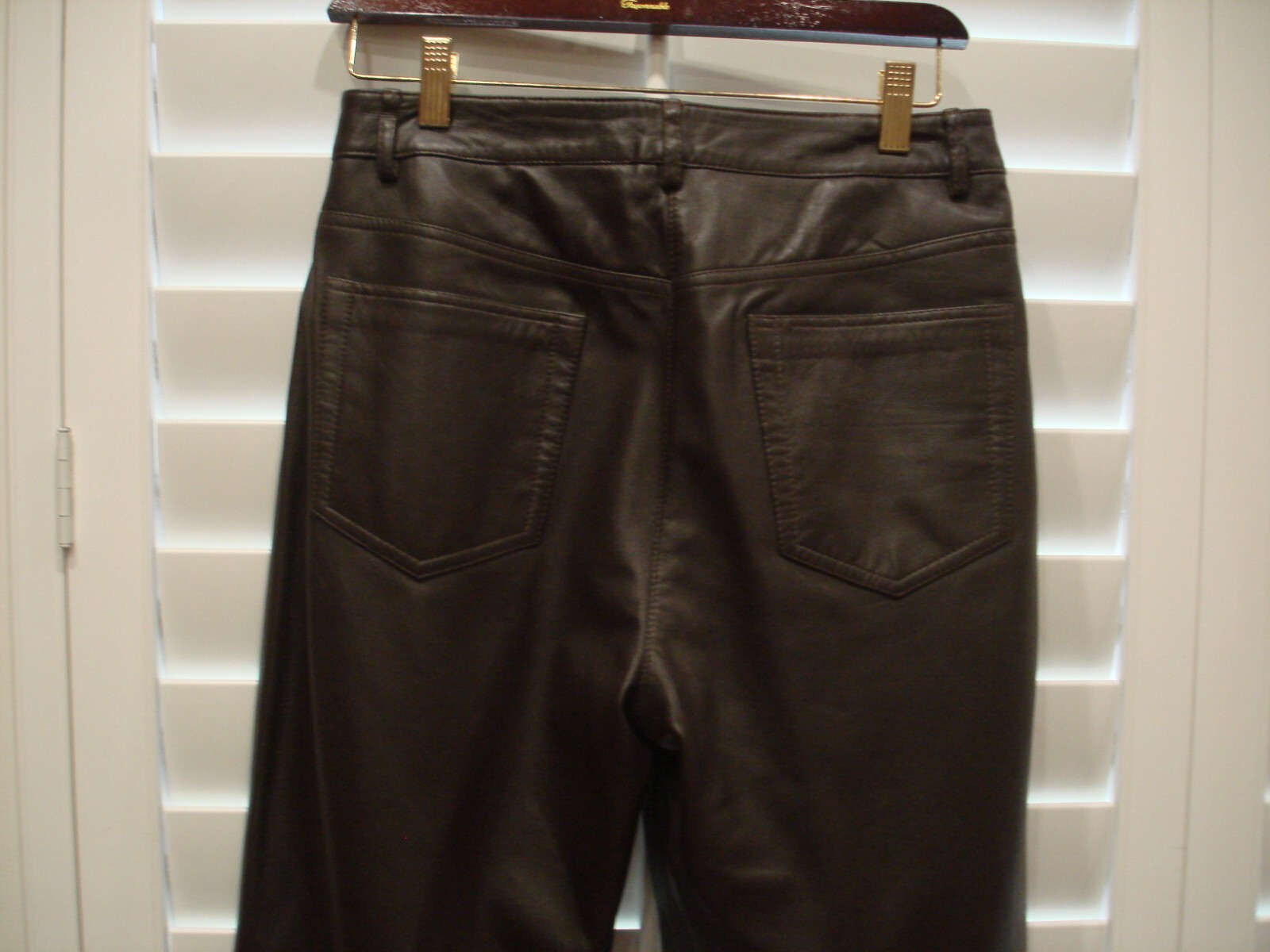 Vtg 100 leather ladies' lined brown pants front zip hook size 8, Excellent