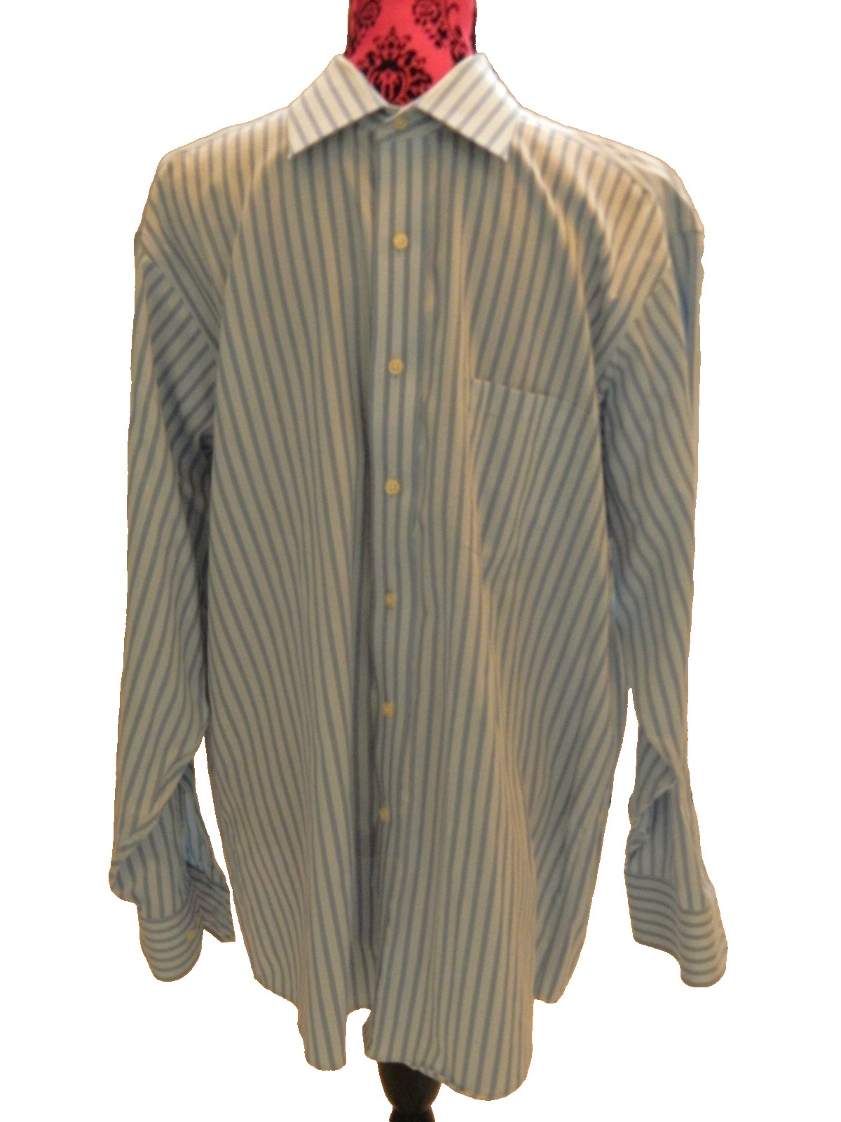 Donald Trump Signature Collection Blue Dress Shirt 17 34/35 Striped Button Down