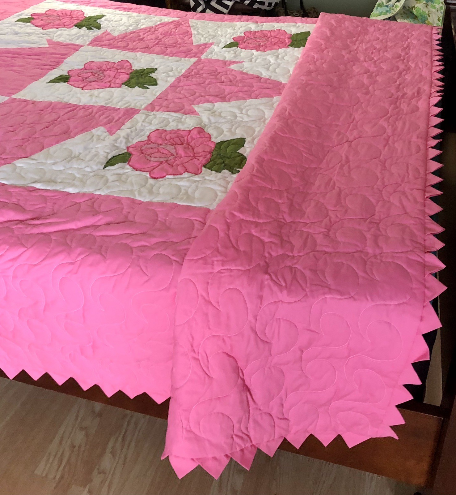 • VTG Handmade Patchwork Embroidered Quilt 98 x91 Pink Multicolor Floral Blanket