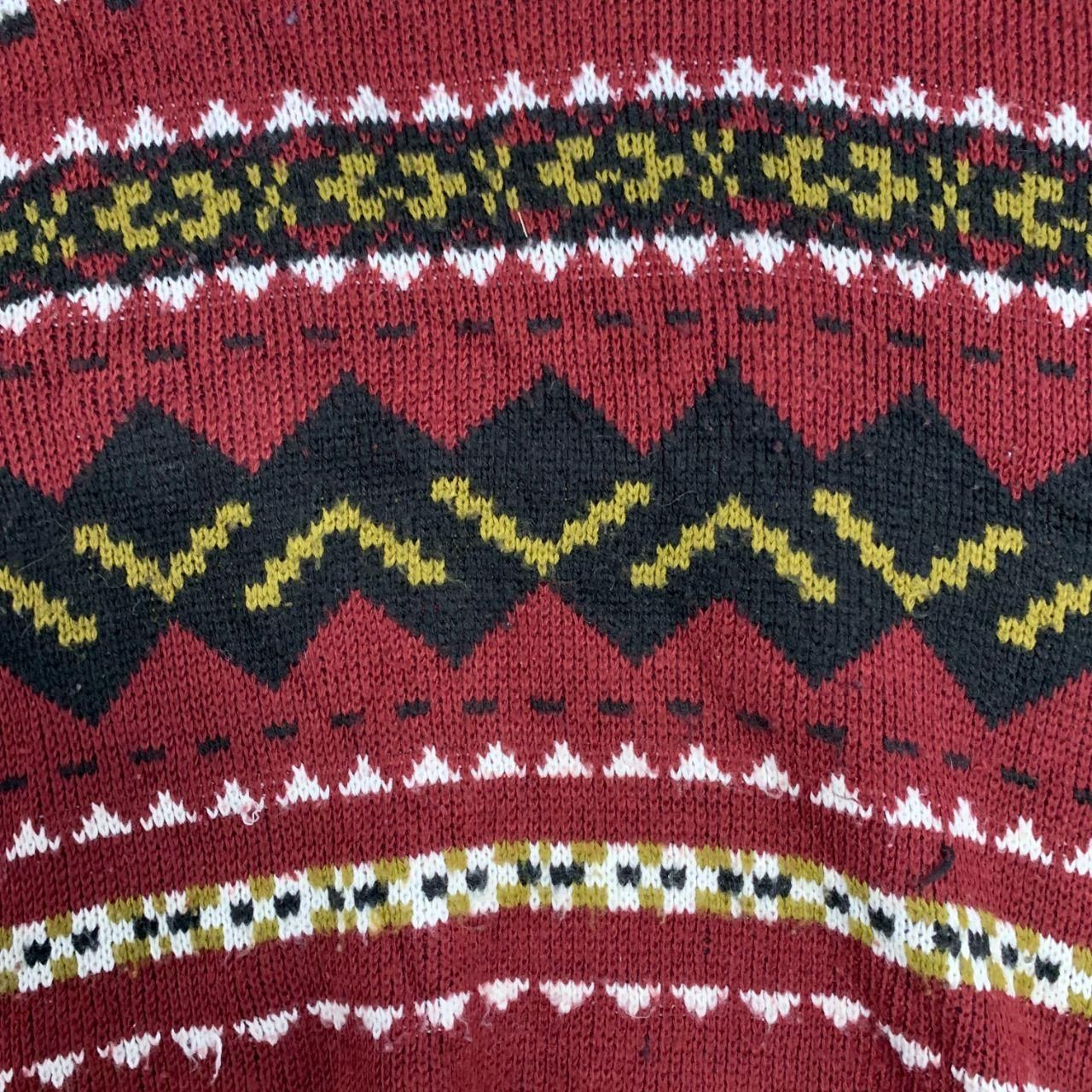 Vintage Abstract Knitted Jumper Patterned Grandad Chunky Knit Sweater Men's L