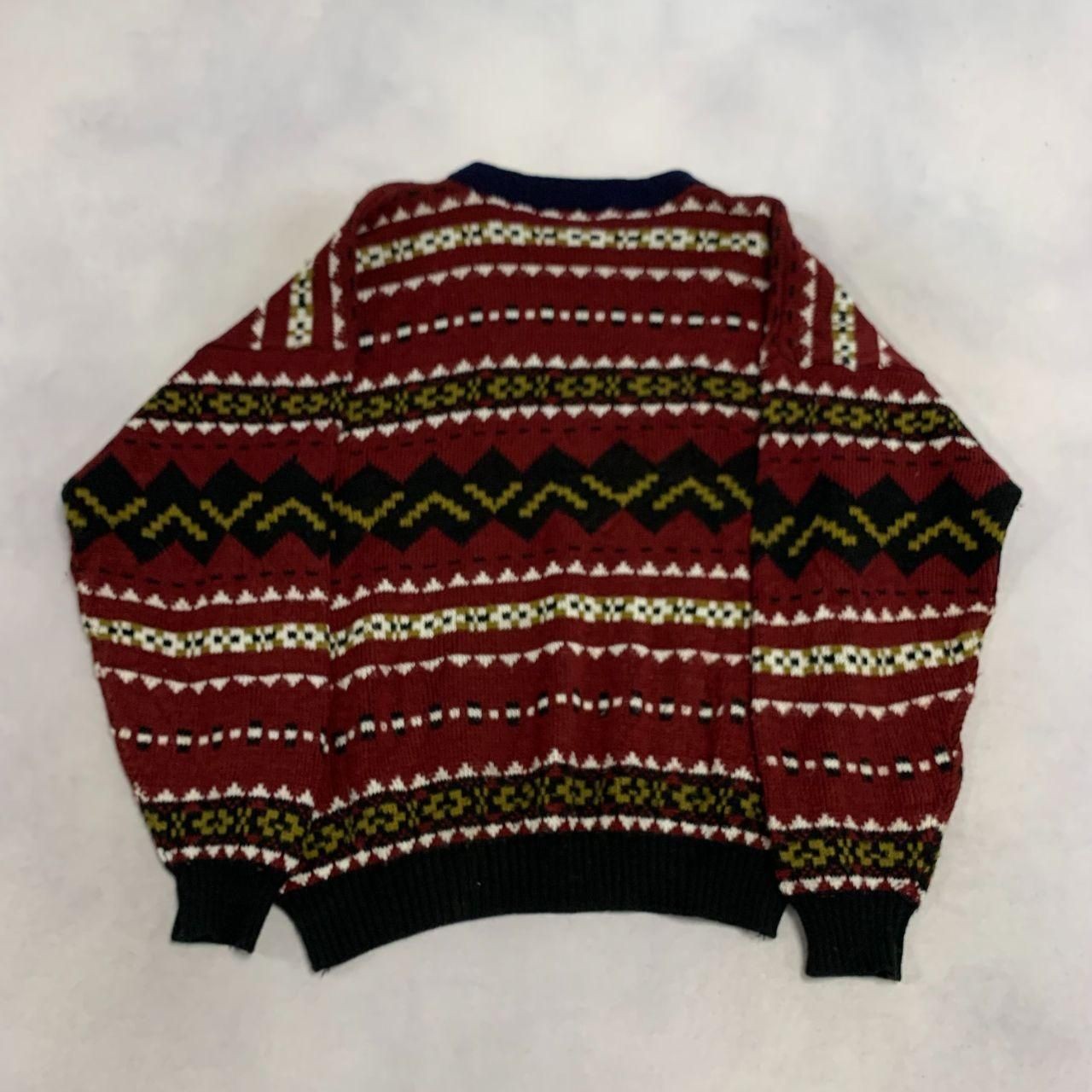 как выглядит Vintage Abstract Knitted Jumper Patterned Grandad Chunky Knit Sweater Mens L фото