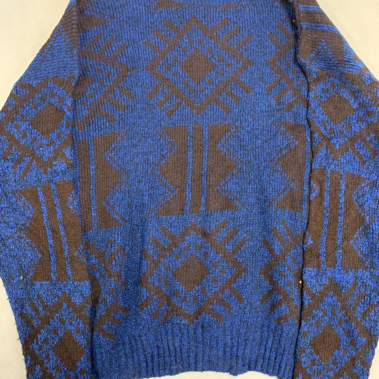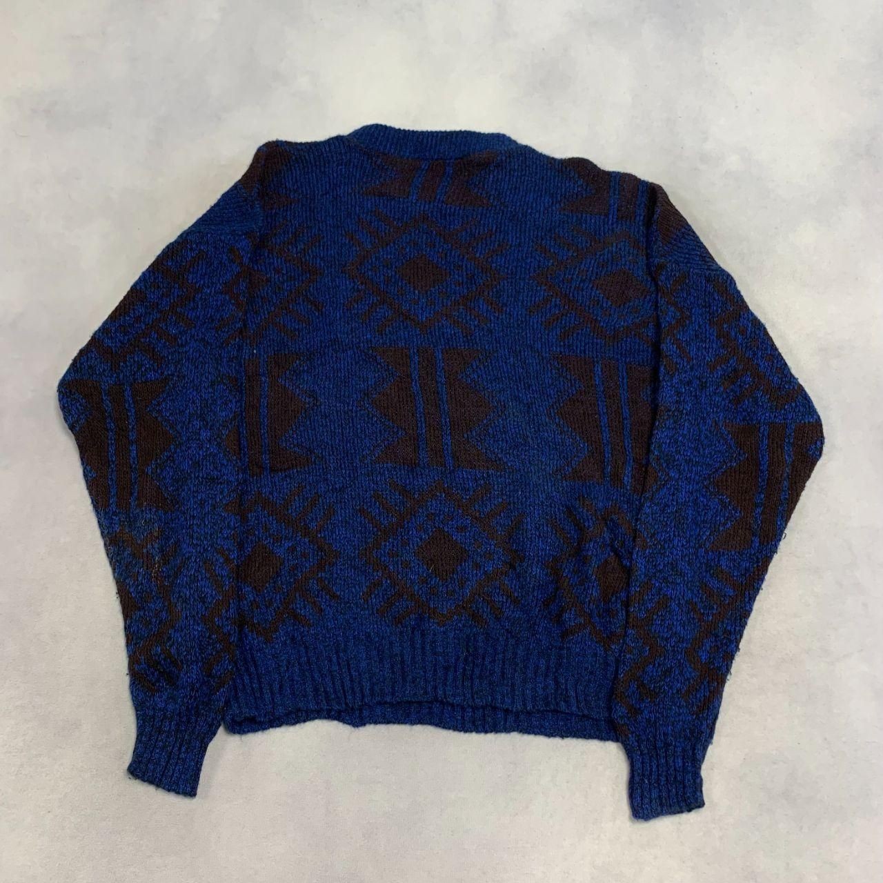 как выглядит Vintage Abstract Knitted Jumper Patterned Grandad Chunky Knit Sweater Mens L фото