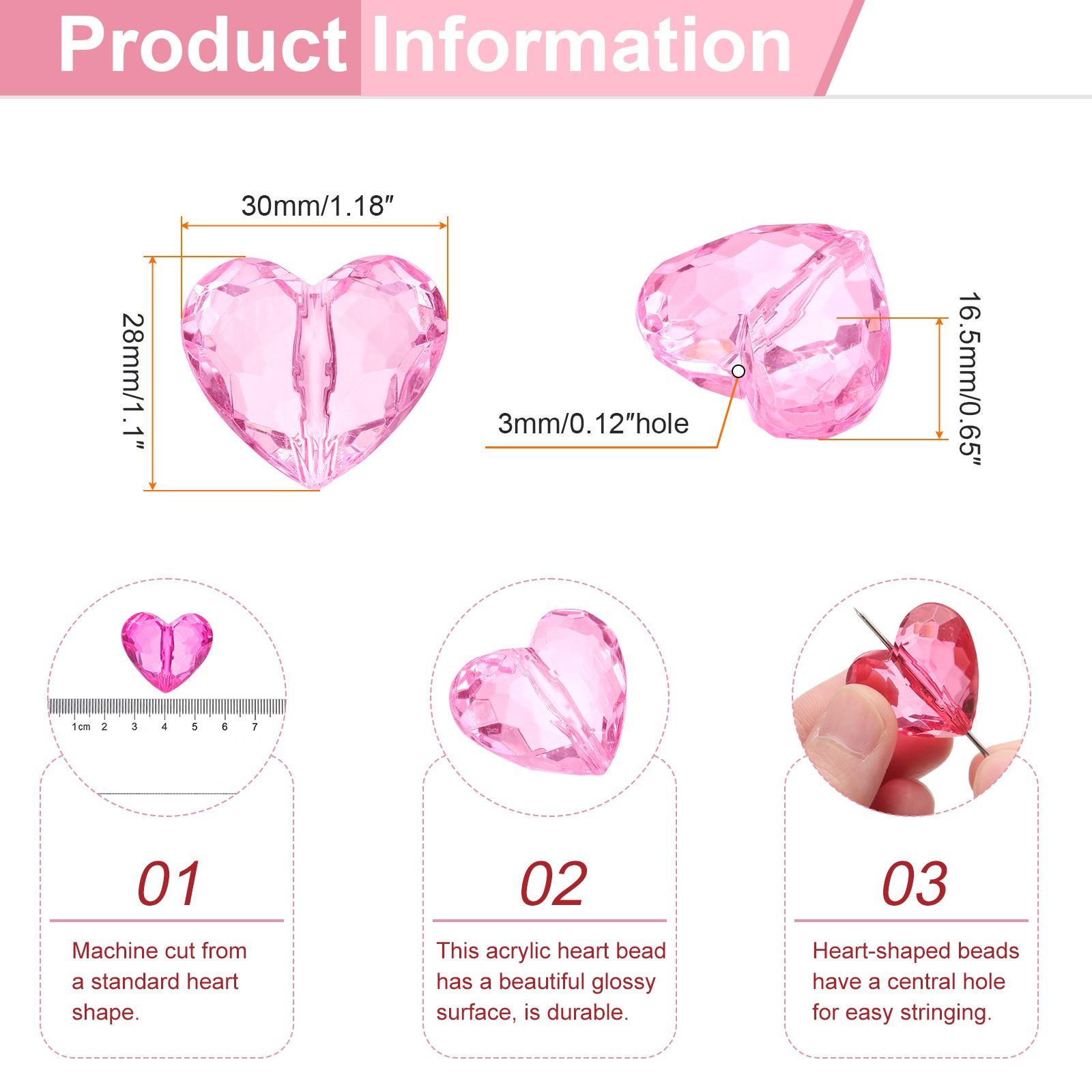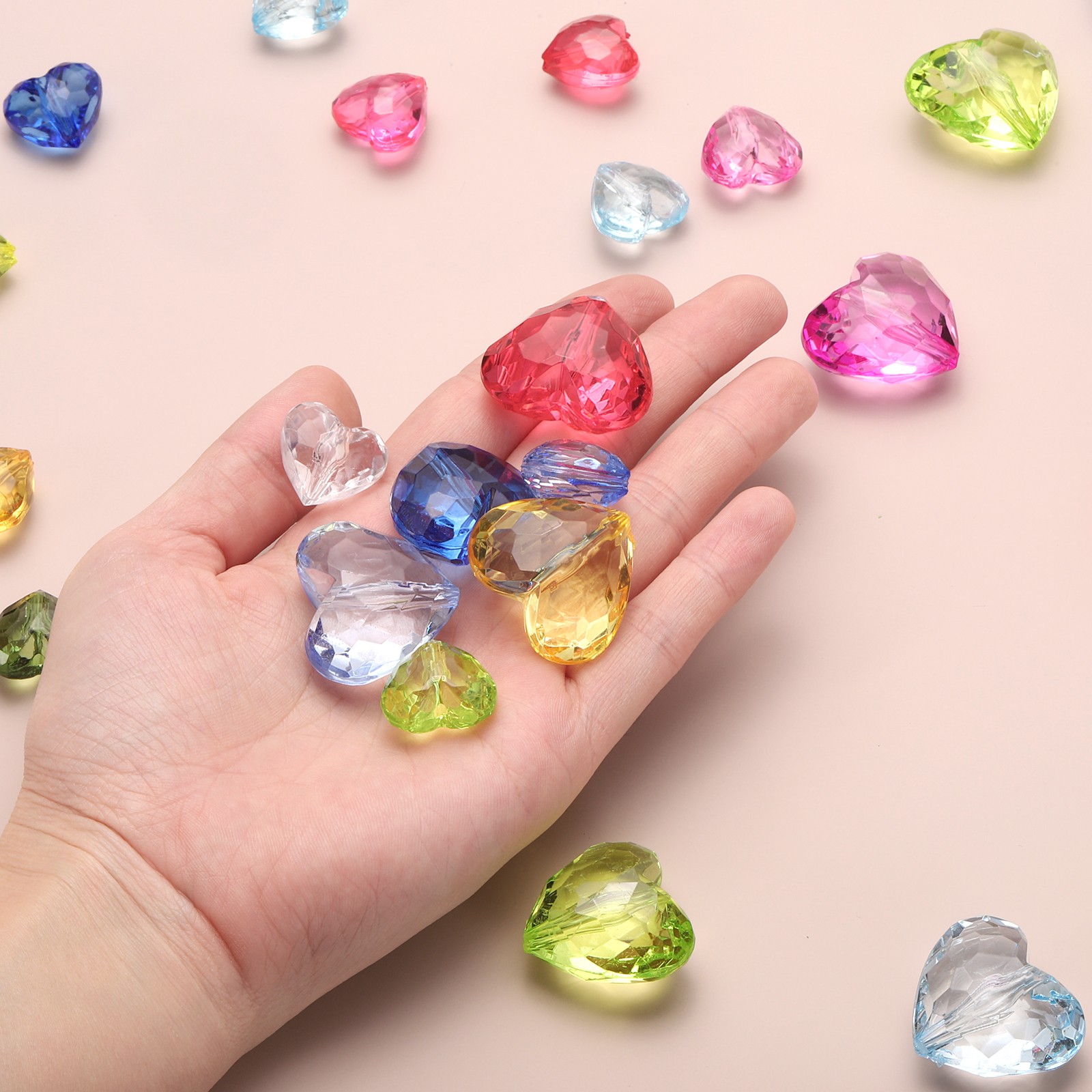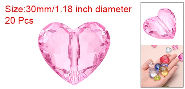 20pcs Acrylic Heart Beads 30x28mm Craft Loose Beads Crystals Gems Pink