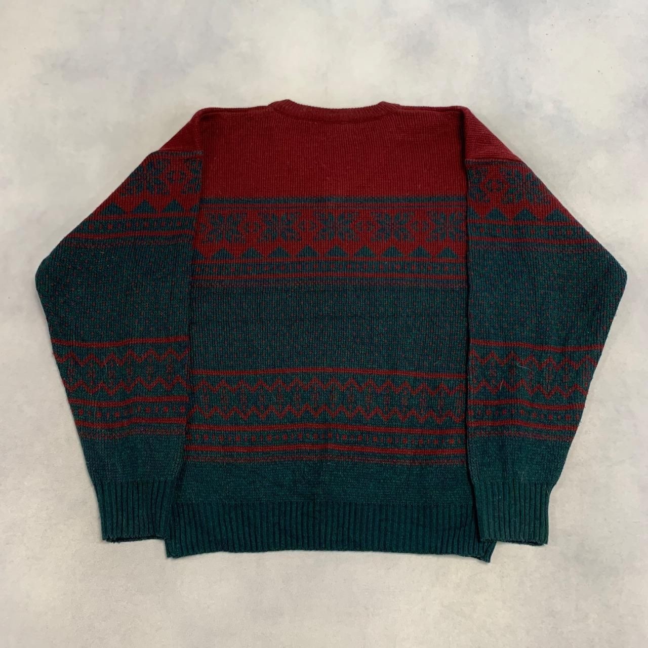 как выглядит Vintage Knitted Jumper Abstract Patterned V-Neck Grandad Knit Sweater Mens L фото